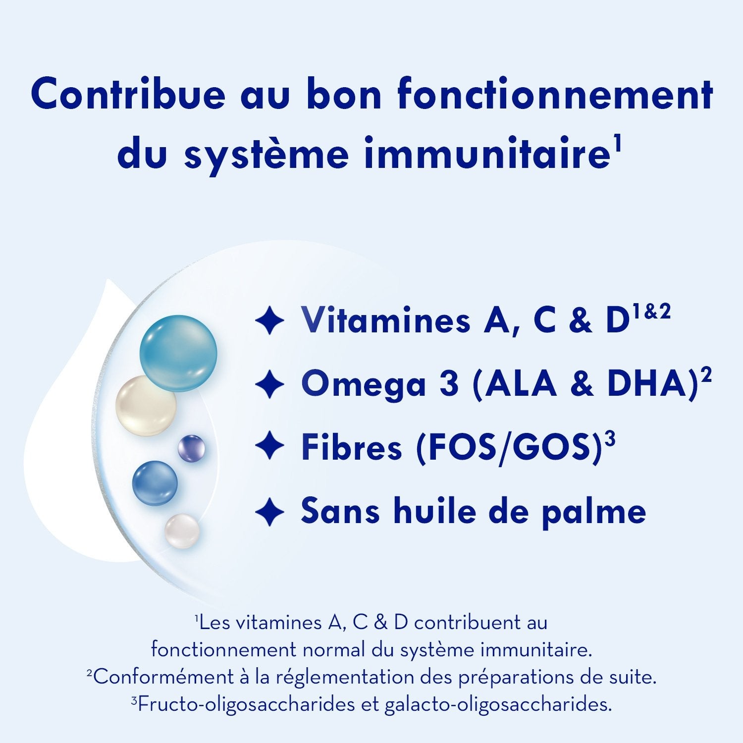 GALLIA CALISMA 2 contains vitamins A, C & D, which contribute to the normal functioning of the immune system, Omega 3 and 6 and FOS/GOS fibers (In accordance with the regulations for follow-on formulas.), PALM OIL FREE, A practical and resealable box
