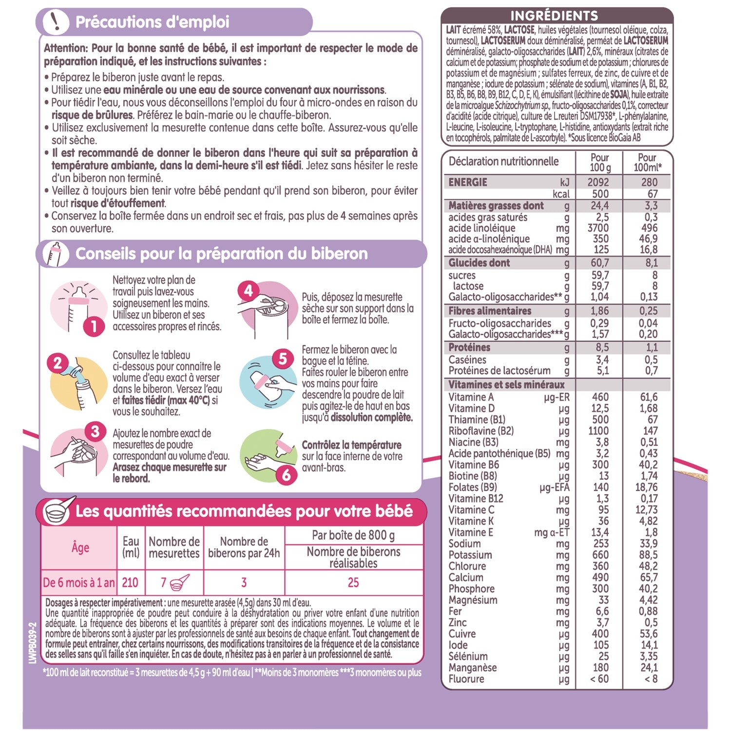 GUIGOZ OPTIPRO Relais 2 is suitable for babies following or supplementing breastfeeding.,This formula contains FOS/GOS** selected following research on breast milk.**Fructo-oligosaccharides/galacto-oligosaccharides.,An adjusted protein content*.*In accordance with the regulations on follow-on milk.,Vitamins A*, C* and D* which contribute to the normal functioning of the immune system.*In accordance with the regulations on follow-on milk.,Made in France / With French milk.,Palm oil free.
