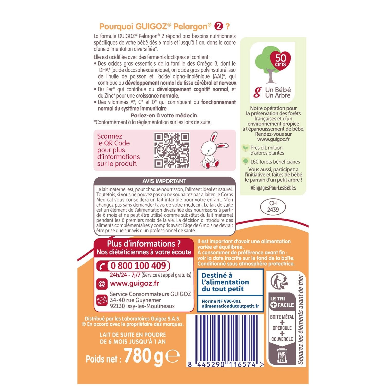 Why GUIGOZ® Pelargon 2? The GUIGOZ® PELARGON 2 formula meets the specific nutritional needs of your baby from 6 months to 1 year, as part of a diversified diet*. It is acidified with lactic ferments and contains: Essential fatty acids from the Omega 3 family, including DHA* (docosahexaenoic acid), a polyunsaturated fatty acid from fish oil, and alpha-linolenic acid (ALA)*, which contributes to the normal development of brain and nervous tissue. Iron*, which contributes to normal cognitive development, and Zinc* for normal growth. Vitamins A*, C*, and D*, which contribute to the normal function of the immune system. *In accordance with the regulations on follow-on milks. Talk to your doctor.
