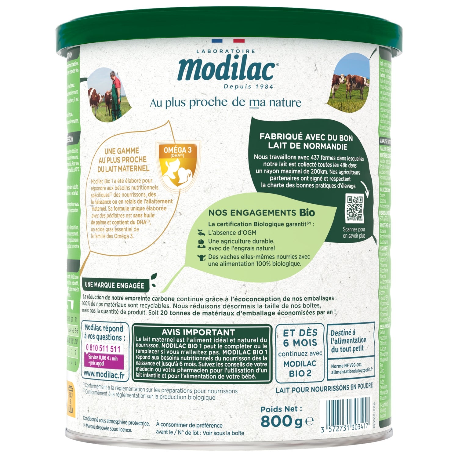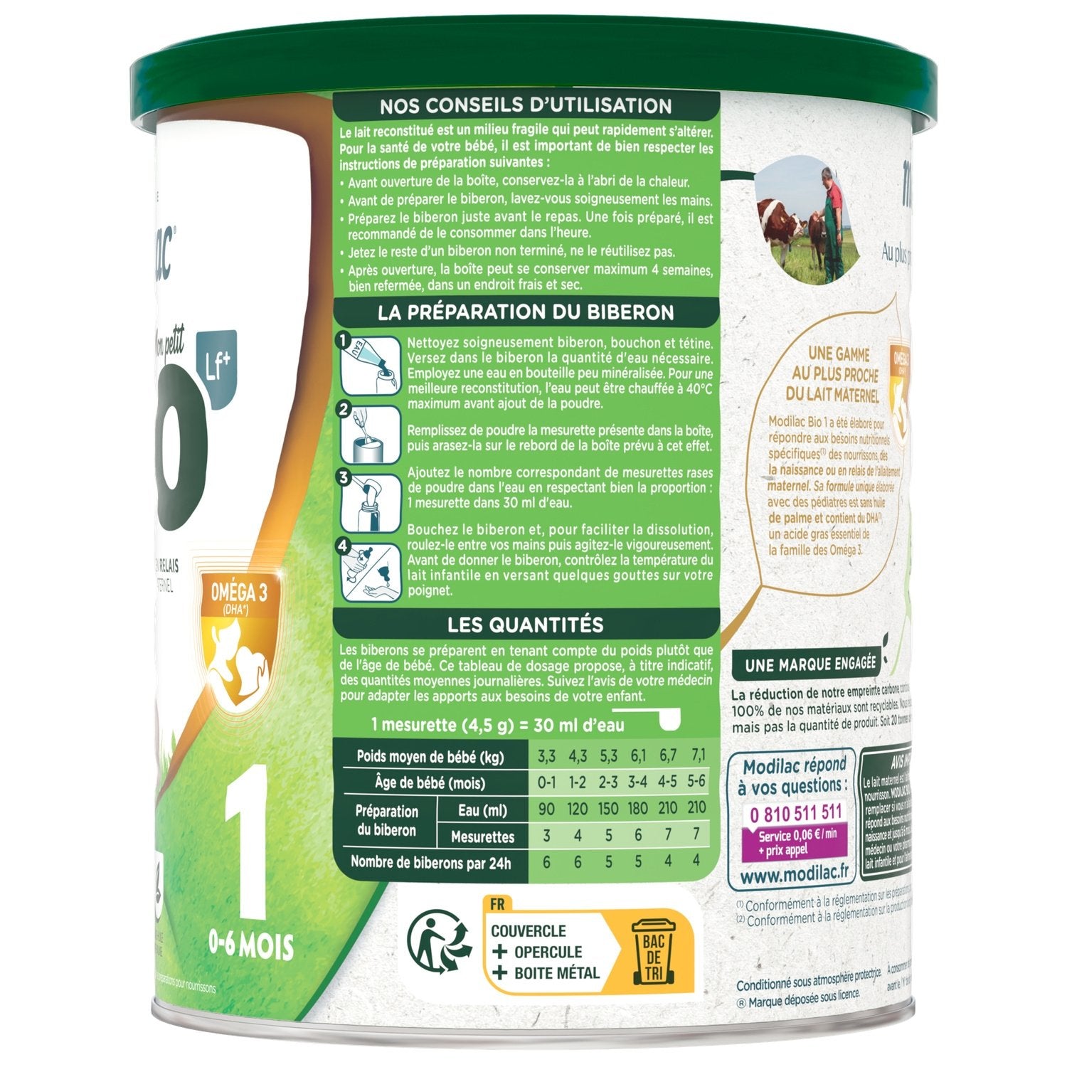 Modilac Bio Lf+ 1 has been developed to meet the specific nutritional needs* of your baby from birth or after breastfeeding up to 6 months. Modilac Bio 1 Lf+ meets the requirements of organic farming. It contains DHA*, an essential fatty acid from the Omega 3 family. *In accordance with regulations on infant formula
