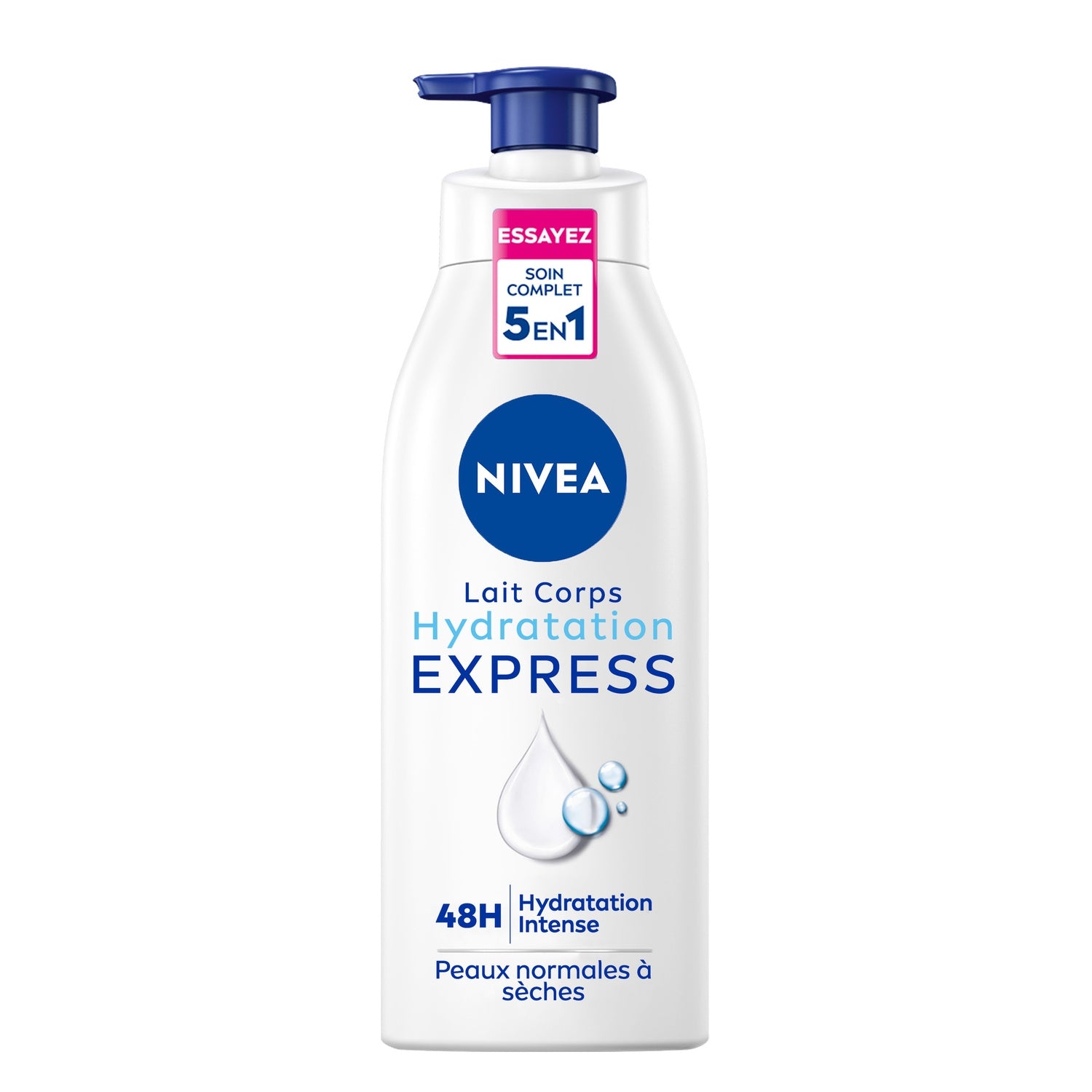 The formula of Express Hydration Fluid Body Lotion is enriched with NIVEA care concentrate and marine minerals for a complete 5-in-1 action: . 48 hours of intense hydration (instrumental test and self-assessment - 30 volunteers) . Absorbs quickly . Softer skin . No greasy effect . Healthy glowing skin