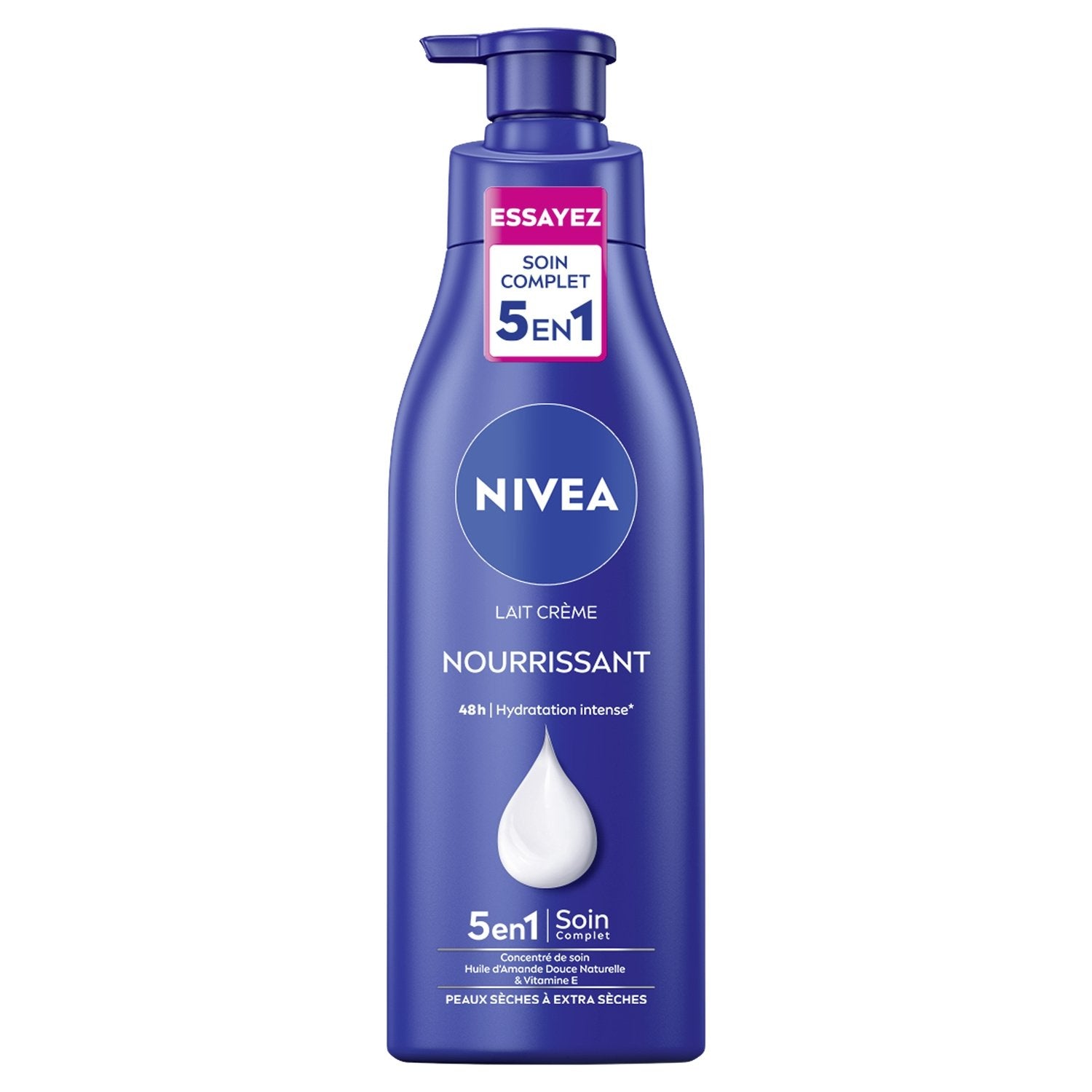 NIVEA Nourishing Body Lotion is enriched with a care concentrate, natural sweet almond oil & Vitamin E for a 5-in-1 care action. From the first application, its anti-dryness formula visibly reduces roughness of very dry skin. Without a greasy effect, NIVEA Nourishing Body Lotion intensely moisturizes your skin for 48 hours and leaves it softer and radiant with health. For those of you who never stop, have the complete 5-in-1 care reflex. Directions for use: apply NIVEA Nourishing Body Lotion daily all over the body, paying particular attention to drier areas. 250 ml pump bottle.