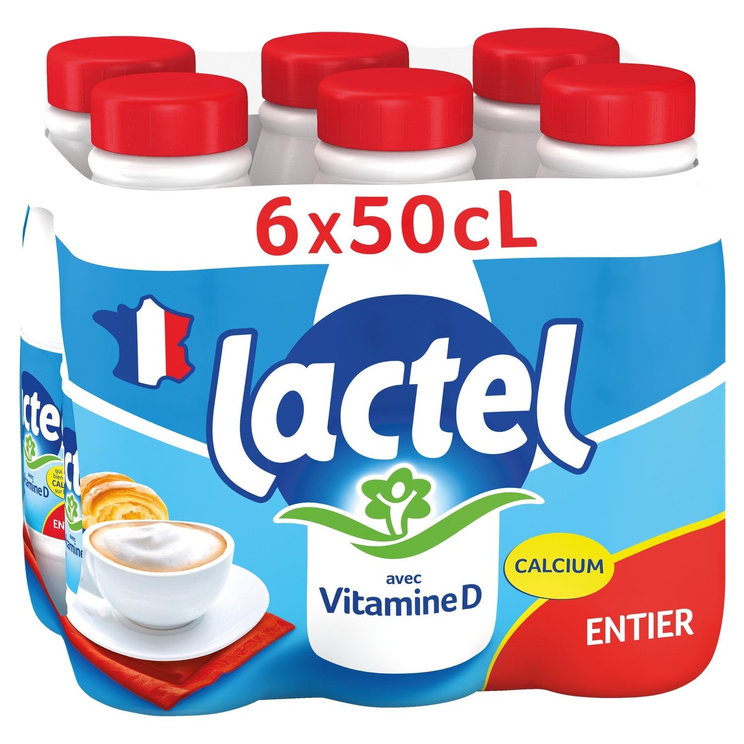 whole milk Vitamin D LACTEL UHT bottle 6X50CL
