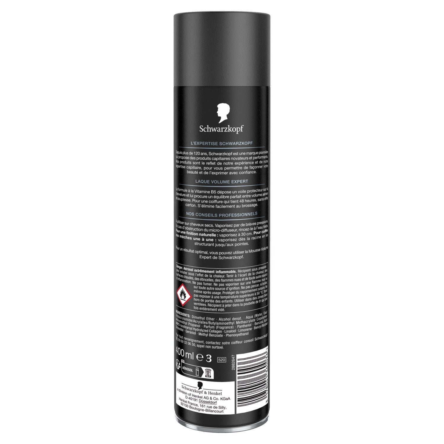 EXPERT VOLUME HAIRSPRAY The formula with Vitamin B5 leaves a protective veil on the hair and gives it a perfect balance between airy volume and flexibility. For a hairstyle that lasts 48 hours, without a stiff effect. Easily removed by brushing.