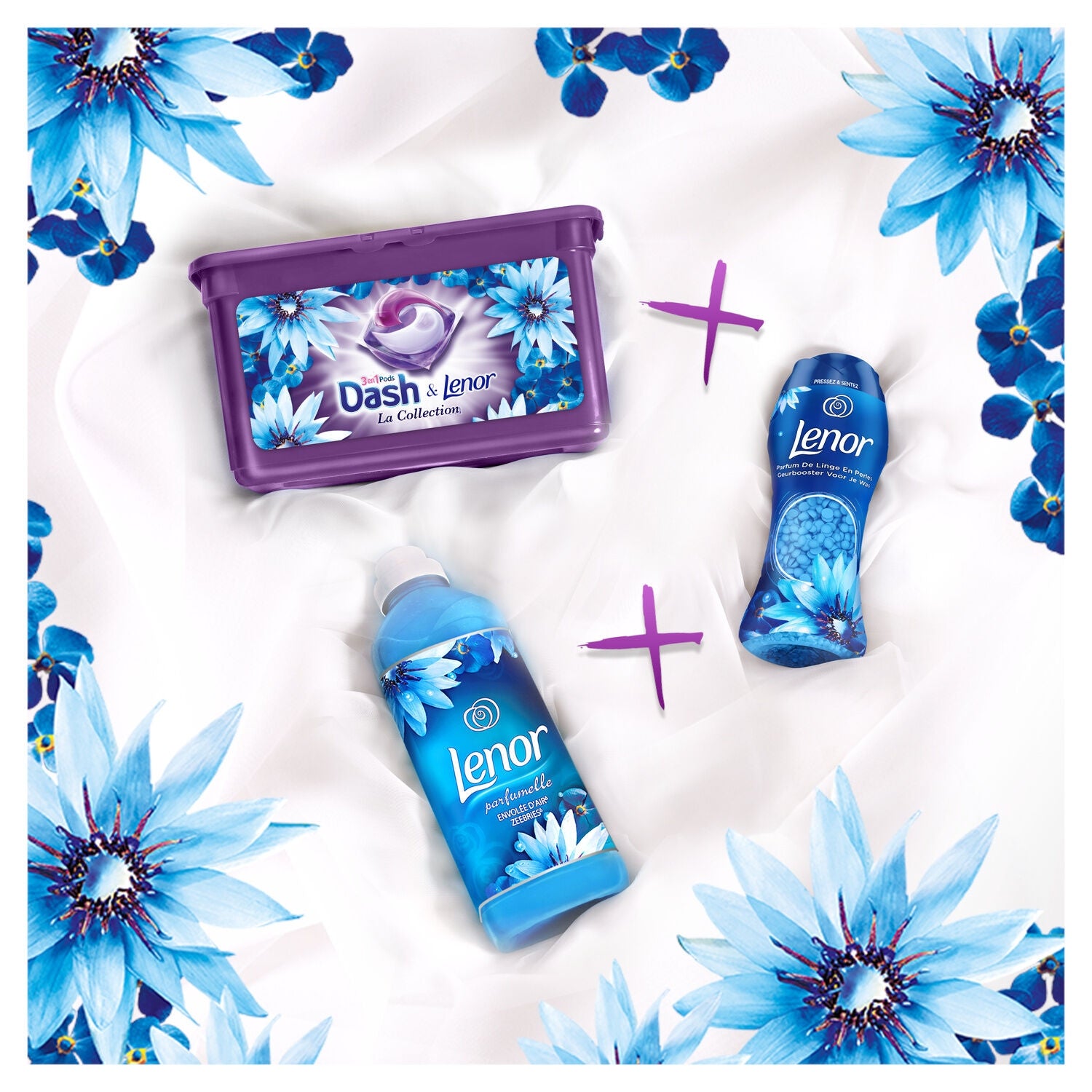 Try Dash Allin1 PODS: Irresistible experience: 1. Brilliant cleanliness 2. Luxurious fragrance 3. Divine softness 4. Fiber protection. Dash La Collection Plein Air laundry detergent capsules, the scent of freshness. Can you smell the early morning? Pure and clear like the endless horizon. Or a blank page on which the day can be written. You feel a sensation of freshness that shakes every fiber and makes everything possible. Your mind is bright and airy. Dash Allin1 Envolée d'Air laundry detergent capsules are inspired by the latest trends and cleverly combine carnations with jasmine, neroli, and ylang-ylang. Inspired by the purity of water and white flowers, the Envolée d'Air fragrance will envelop your clothes in an intense and sparkling freshness. Dash Allin1 Envolée d'Air has been created to work in perfect harmony with Lenor Envolée d'Air fabric softener and perfume beads; use them together for an irresistible laundry routine. WARNING: This product can be dangerous and cause serious injury. Keep Dash Allin1 Pods out of reach of children. Visit keepcapsfromkids.eu to learn more.