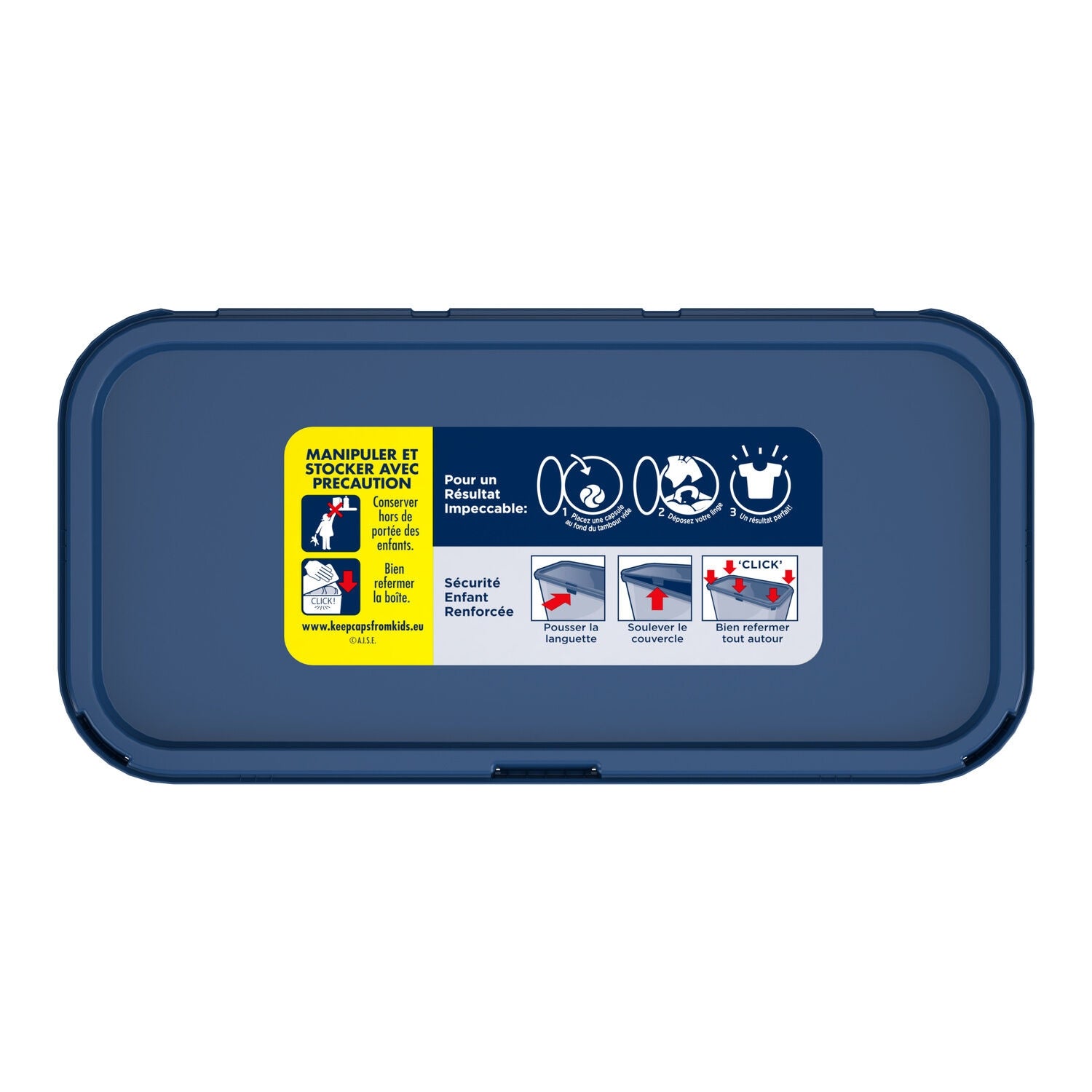 The 26 Skip 3in1 Active Clean Laundry Capsules guarantee impeccable cleanliness and sparkling laundry, thanks to their triple compartment technology that removes the toughest stains such as tomato sauce, chocolate, tea, oil, red fruits or even grass. All the Skip effectiveness is now contained in a laundry capsule, with active ingredients of plant origin and biodegradable and always the guarantee of impeccable results! The box of your laundry capsules is also 100% recyclable. 1 capsule is enough to clean your laundry thoroughly, ensuring perfect results and optimal dissolution even in short cycles. Easy to use, Skip Active Clean laundry capsules delicately perfume your laundry and clothes with a lasting fresh scent. Skip advises you: it is important to dose your detergent correctly to obtain impeccable results. 1) Place a capsule at the bottom of the empty drum 2) Place your laundry 3) Perfect results! Skip represents more than 50 years of expertise and innovation in the field of laundry detergents, always guided by a strong desire to improve the daily lives of families. Skip also represents a unique brand philosophy! At Skip, we are convinced that our children need to experiment, play outside, and discover the world around them with complete peace of mind, in order to prepare for tomorrow. Thus, each stain can be synonymous with a moment of joy and sharing, a successful challenge, or a new adventure. That's why our detergents are effective on even stubborn stains. To give children the freedom to get dirty! In 2020, Skip continues its commitment to the environment, and its liquid detergents now have plant-based and biodegradable active ingredients, always with the guarantee of impeccable results! Skip, tough on stains, gentler on our planet. More information at www.skip.fr. On the back of the package, you'll find instructions for correctly dosing your Skip capsule detergent. Reinforced safety when opening. Always keep out of reach of children.