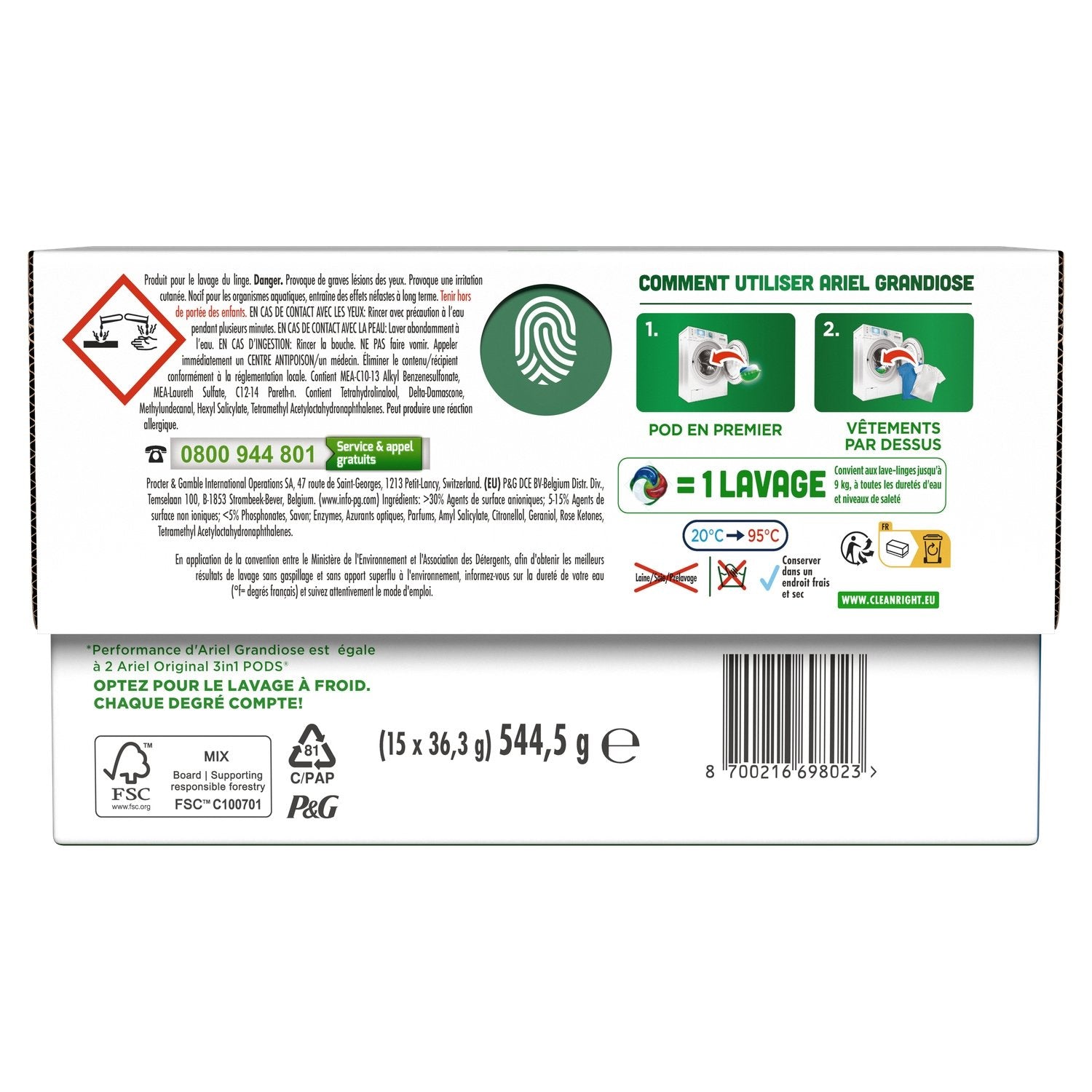 Ariel Grandiose PODS, Liquid Laundry Detergent in Capsules 15 Washes, Original 2 X Stain and Odor Removal Action