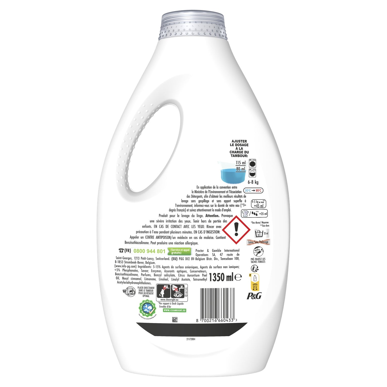 Operator contact / Consumer service Consumer service Company name: P&G DCE bvba/sprl-Belgium Distr. Div. Address: Temselaan 100, B-1853 Strombeek-Bever, Belgium Telephone: 0800 944 801 (free service and call) Operator contact Company name: Procter & Gamble France SAS Address: 163 Quai Aulagnier 92665 Asnières Cedex