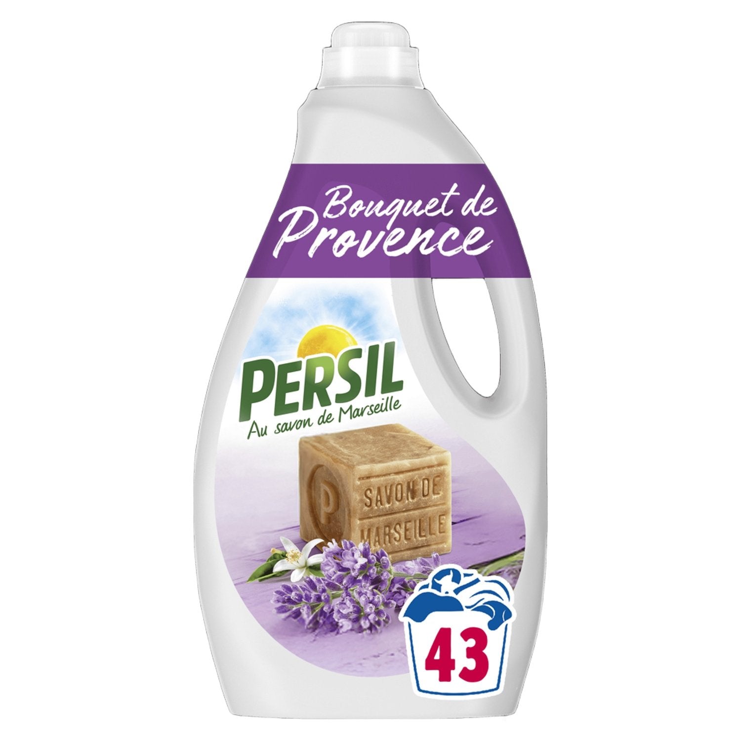 Rediscover the Bouquet de Provence Marseille Soap laundry detergent, even more effective even in cold conditions¹.,Persil Bouquet de Provence liquid laundry detergent with Marseille soap gives you clean, fresh laundry.,The fragrance² with natural lavender extracts in this detergent will transport you to the south of France!,Its Marseille soap formula dissolves instantly and penetrates deep into the laundry to give you sparkling cleanliness.,A 43-wash detergent at a low price and effective from 30°C.,The formula of this detergent is dermatologically tested to be suitable for the whole family. Its packaging is fully recyclable.