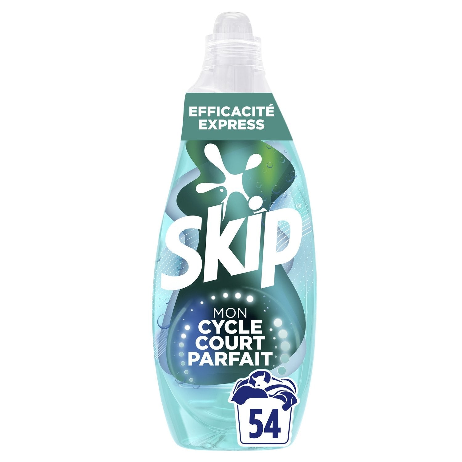 SKIP Short Cycle Express Efficiency 54 Washes liquid detergent is the first detergent specially designed for short cycles. Optimal efficiency, even from 15 minutes.,This detergent was voted product of the year 2025*. It cleans, protects fibers and eliminates unpleasant odors, while leaving your laundry fresh and fragrant.,Skip My Perfect Short Cycle detergent offers rapid dissolution and action thanks to its Pro-S™ Technology.,Extraordinary fragrance with fresh and elegant notes, inspired by fine perfumery.,Save electricity and water by using the short cycle program on your machine.,For optimal results in a short cycle, even from 15 minutes, the recommended dosage is 40 ml for less than 2 kg of laundry (soft or medium water). Add 10 ml if the water is hard.