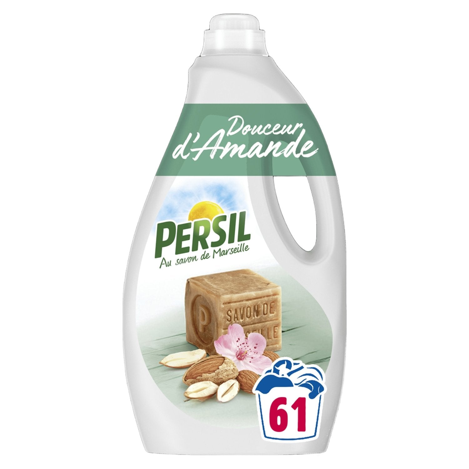Rediscover the Marseille Soap Douceur d'Amande laundry detergent, even more effective even in cold conditions¹.,Persil Douceur d'Amande liquid laundry detergent with Marseille soap gives you clean, fresh laundry.,The fragrance² with natural vanilla extracts in this detergent will transport you to the south of France!,Its Marseille soap formula dissolves instantly and penetrates deep into the laundry to give you sparkling cleanliness.,A 61-wash detergent at a low price and effective from 30°C.,The formula of this detergent is dermatologically tested to be suitable for the whole family. Its packaging is fully recyclable.