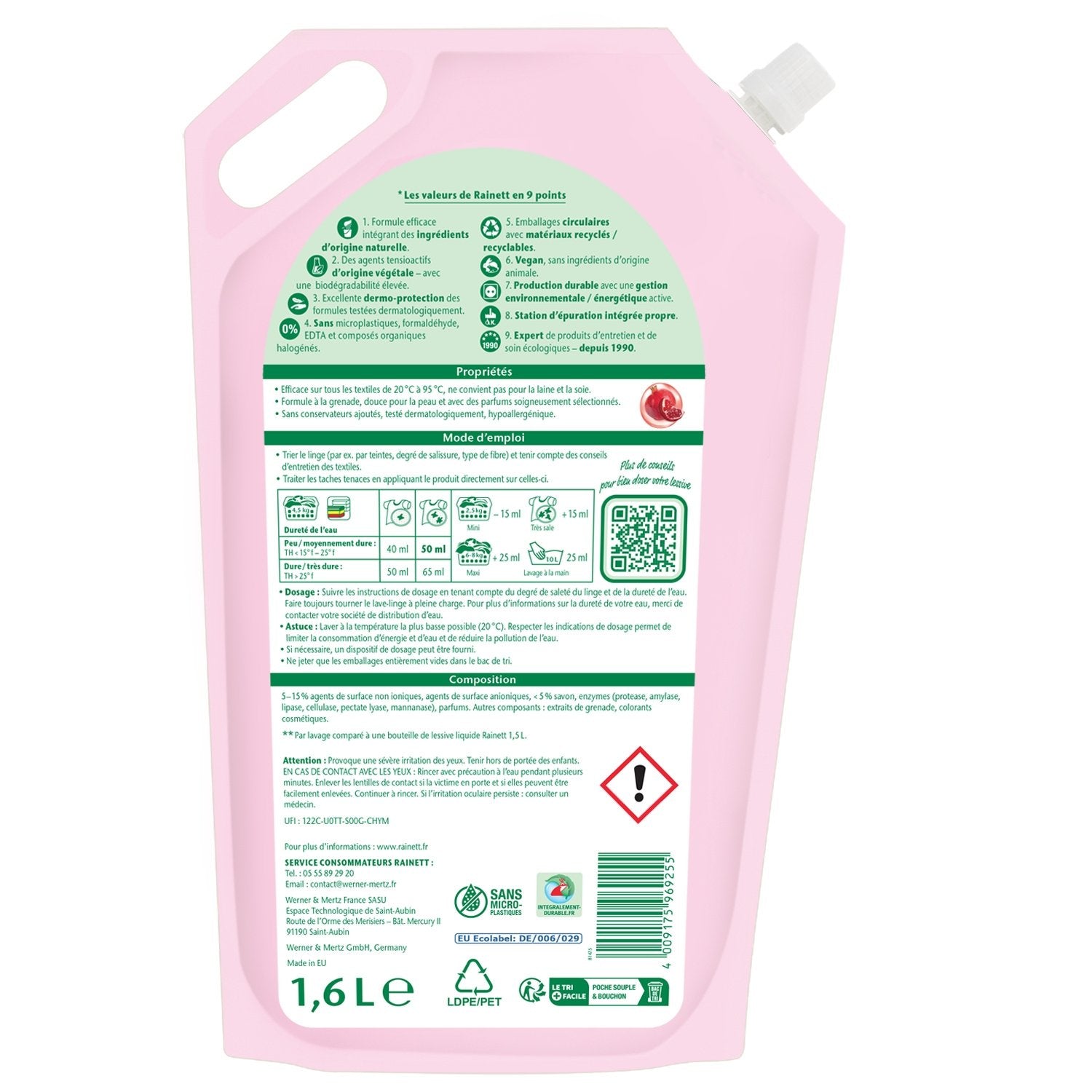 Rainett Ecolabel Pomegranate Liquid Laundry Detergent for Sensitive Skin 1.6L - 32 Wash Refill