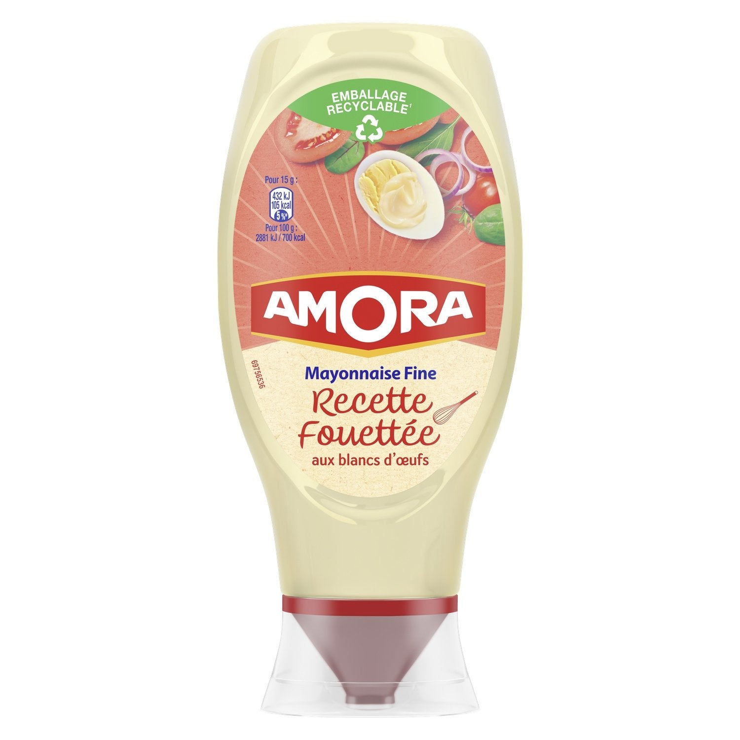 Discover the light texture and softness of Amora Whipped Mayonnaise Recipe, a mayonnaise without mustard to delight the whole family.,A light, whipped recipe containing egg whites and prepared with quality ingredients.,Share the best: a recipe without colorings and prepared with rapeseed oil, rich in Omega 3.,Mayonnaise to delight the whole family: a mayonnaise recipe without mustard, and with a light and fine texture.,A generous and tasty mayonnaise recipe, in a squeeze bottle containing at least 63% recycled materials.,With Amora® Whipped Mayonnaise Recipe, share more than just a meal!