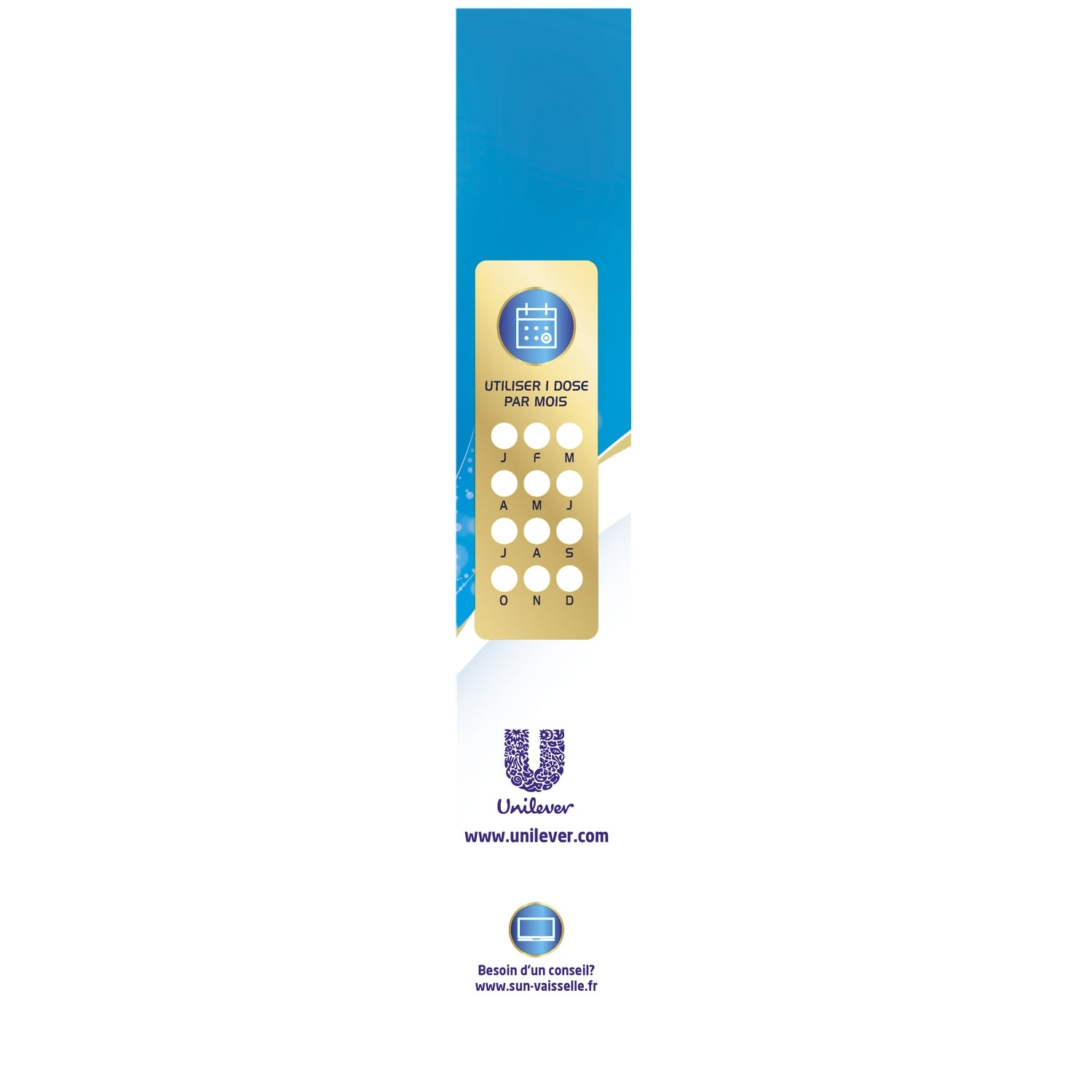 New design, same effectiveness: extend the life of your dishwasher with SUN Classic Dishwasher Cleaner 3 Doses Against Limescale and Grease Deposits. It cleans the spray arms, filter, and pipes of your machine, for enhanced hygiene! It cleans and refreshes, removes limescale, and has degreasing power. For optimal results and perfect maintenance, we recommend using Sun Classic Dishwasher Cleaner once a month. By purchasing this product, you will therefore have enough doses for 3 months of use. Directions for use: 1. Completely empty your dishwasher. 2. Pour the contents of one sachet of dishwasher cleaner into the product drawer. 3. Use a normal or intensive program. Since its beginnings in 1965, Sun has continued to dedicate itself to innovation by creating products that help you take care of your dishes and dishwasher. With over 50 years of expertise, Sun is constantly improving its dishwasher formulas so they work at lower temperatures or in shorter cycles, allowing you to save both water and energy. As part of our sustainable development approach, all Sun cardboard packaging is made from 85% recycled paper and is recyclable and biodegradable*. Sun is committed to providing efficient and clean dishes while respecting the environment. *excluding Sun Power of Nature Tablets