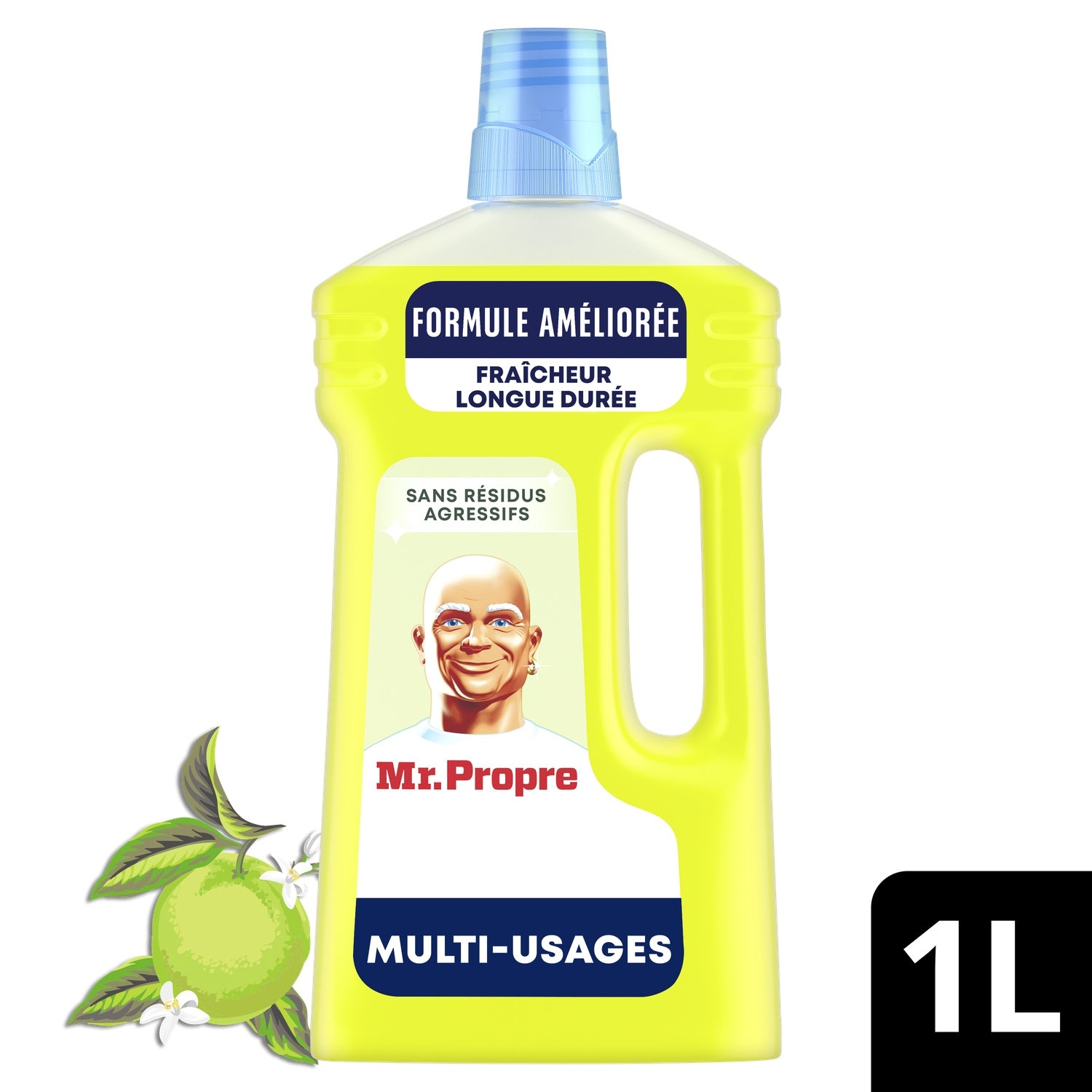 Mr. Propre Multi-Purpose Liquid Floor Cleaner with Bergamot and Essential Oils 1L. Removes up to 100% of dirt and grease, without streaks.