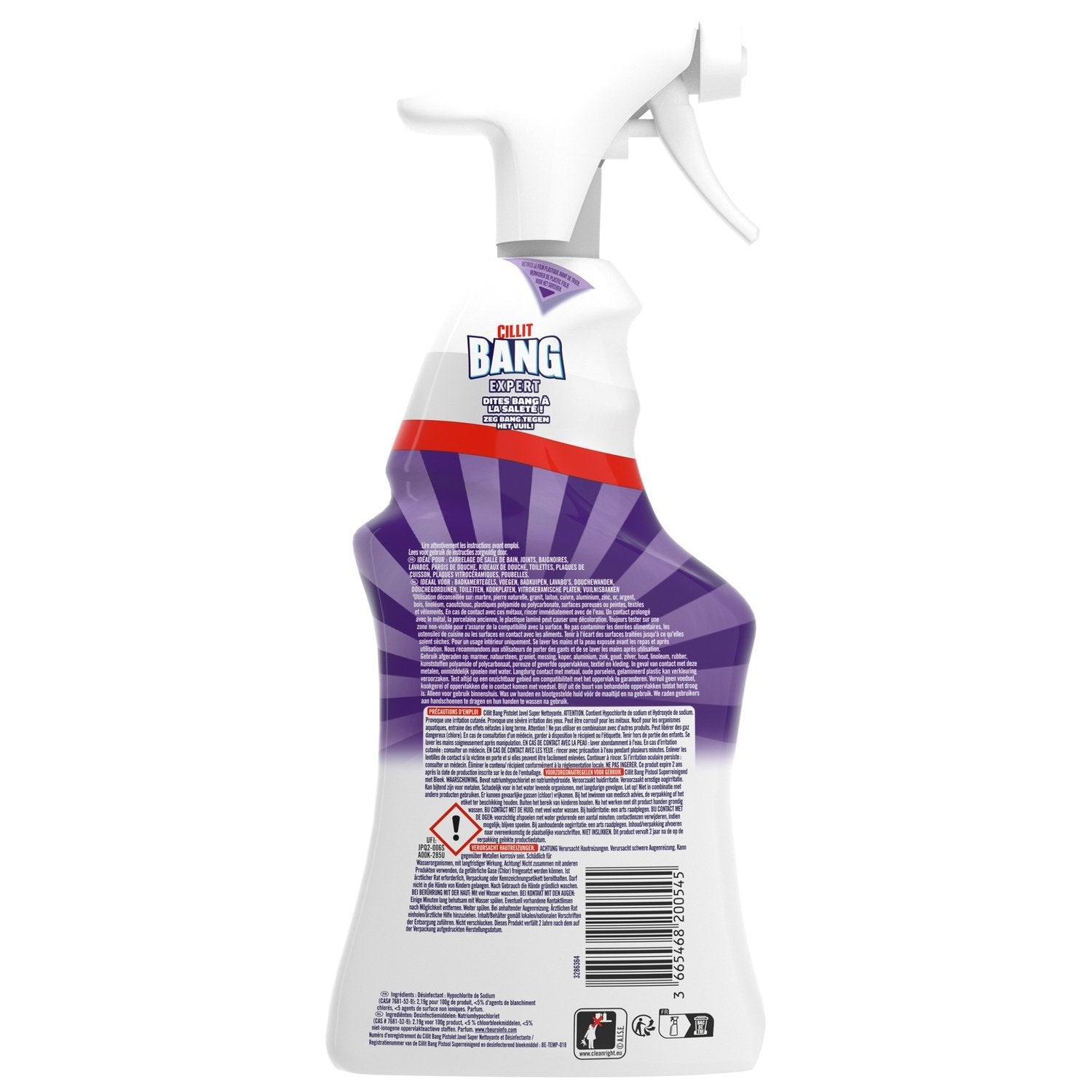 Cillit Bang Expert Bleach Spray's formula combines the disinfecting action of bleach with cleaning agents for exceptional results. Bleach neutralizes bacteria and viruses in minutes, and the cleaning agents remove even stubborn dirt, for impeccable cleanliness and hygiene every day.