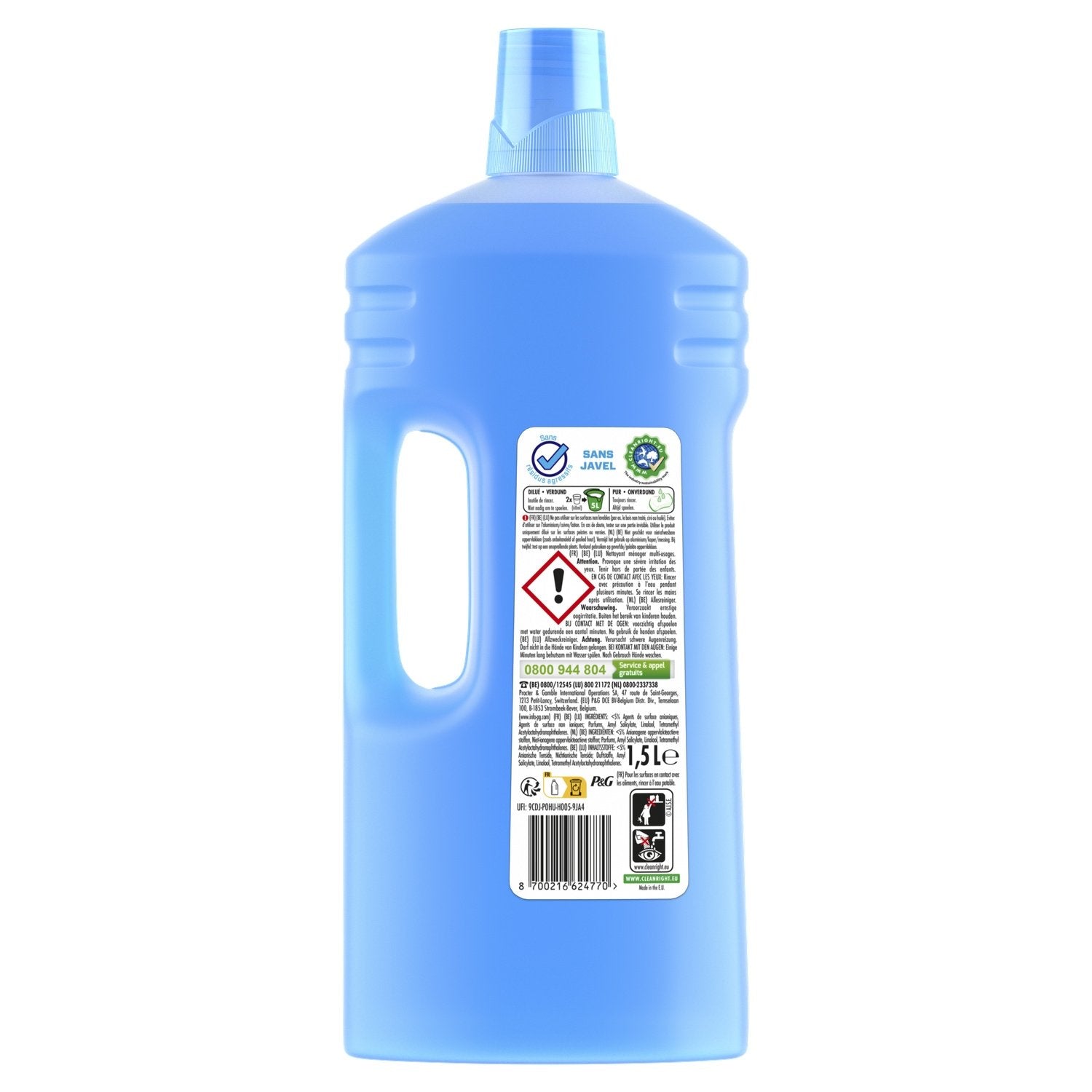 Mr. Propre Multi-Purpose Liquid Floor Cleaner with Cotton Flower Scent 1.5L. Removes up to 100% of dirt and grease, without leaving streaks.