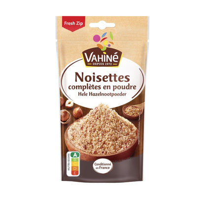 Whole hazelnut powder with a freshness zip, packaged in France.