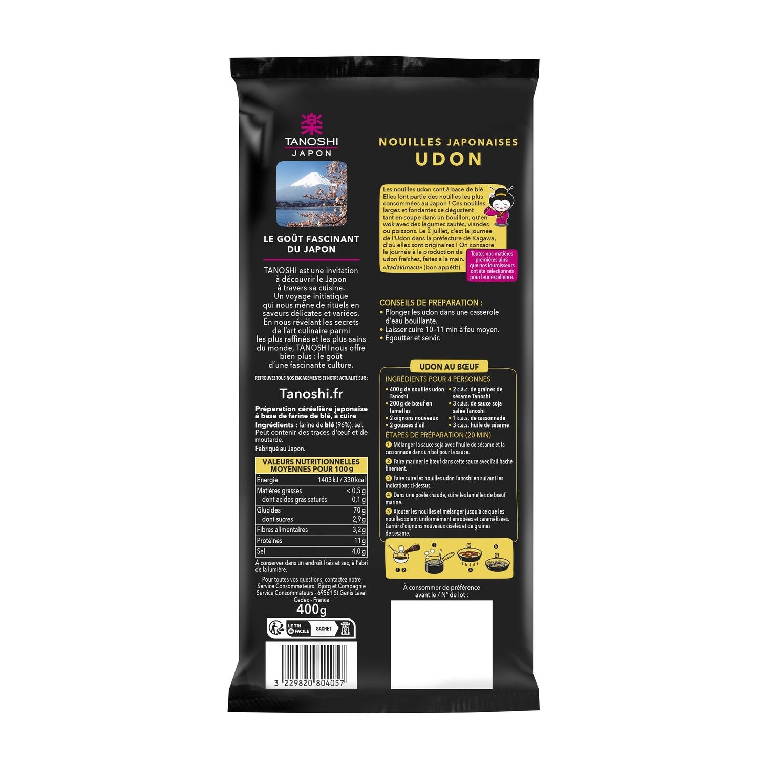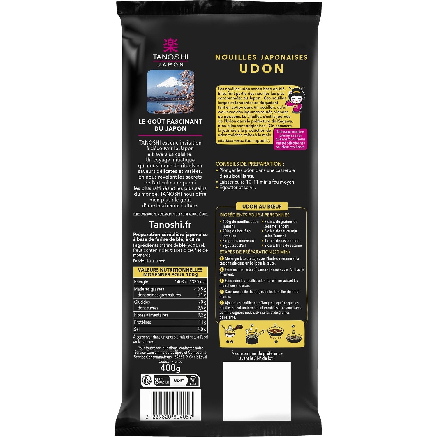 Udon noodles, made from wheat, are among the most widely consumed noodles in Japan. These wide, flat, and particularly tender noodles are mainly eaten in soup or stir-fried with vegetables, meat, or fish.