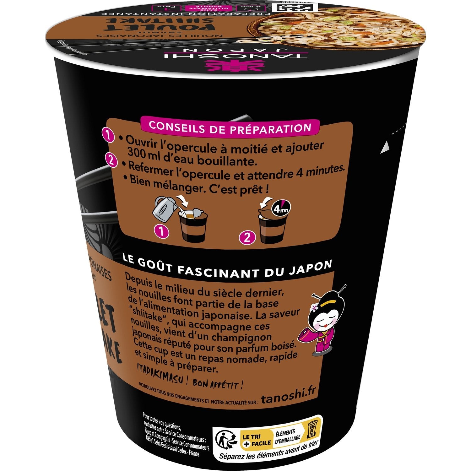 The shiitake flavor that accompanies these noodles comes from a Japanese mushroom known for its woody aroma. This cup is a quick and easy meal on the go. Ready in 4 minutes and with no added MSG, these noodles will help you (re)discover the delicate and varied flavors of Japanese cuisine.