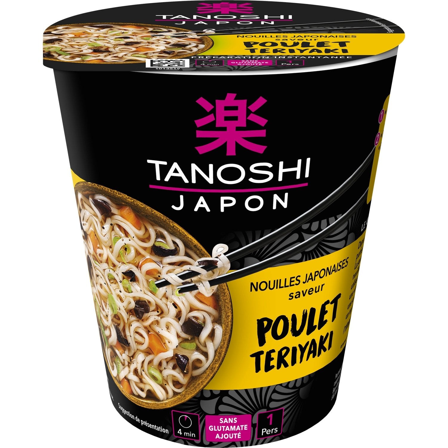 The teriyaki flavor that accompanies these noodles comes from a culinary technique used in Japan that consists of grilling meat previously marinated in a sweet soy sauce with mirin. This cup is a quick and easy meal on the go. Ready in 4 minutes and with no added MSG, these noodles will help you (re)discover the delicate and varied flavors of Japanese food.