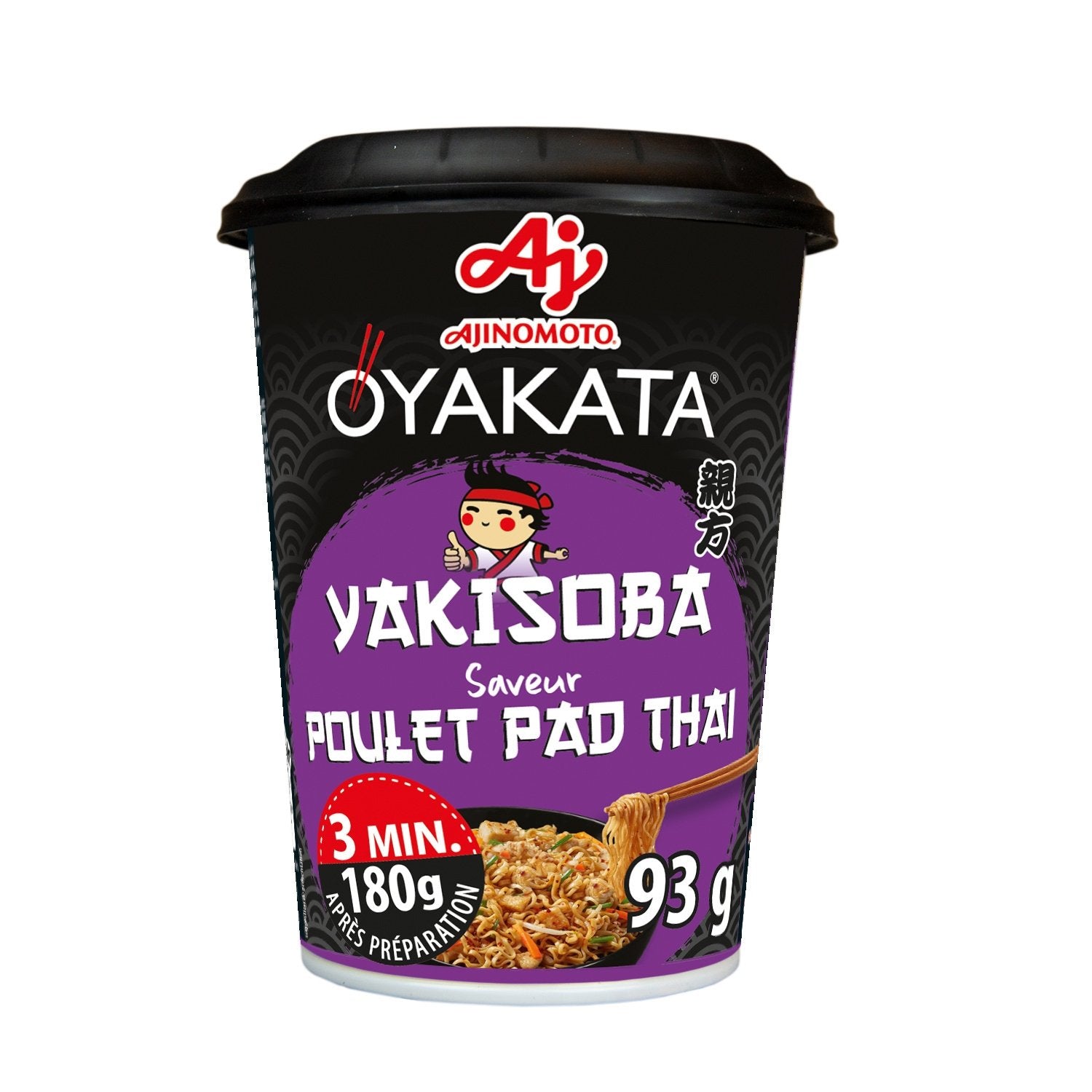Discover Yakisoba Oyakata stir-fried noodles! Ready in 3 minutes with a little boiling water, they offer you a delicious and comforting meal break. Indulge in the Chicken Pad Thai flavor, inspired by the iconic Thai dish, which captures the characteristic taste of Pad Thai noodles enhanced with tamarind paste, lime fish sauce, coriander, ginger, and baby vegetables.