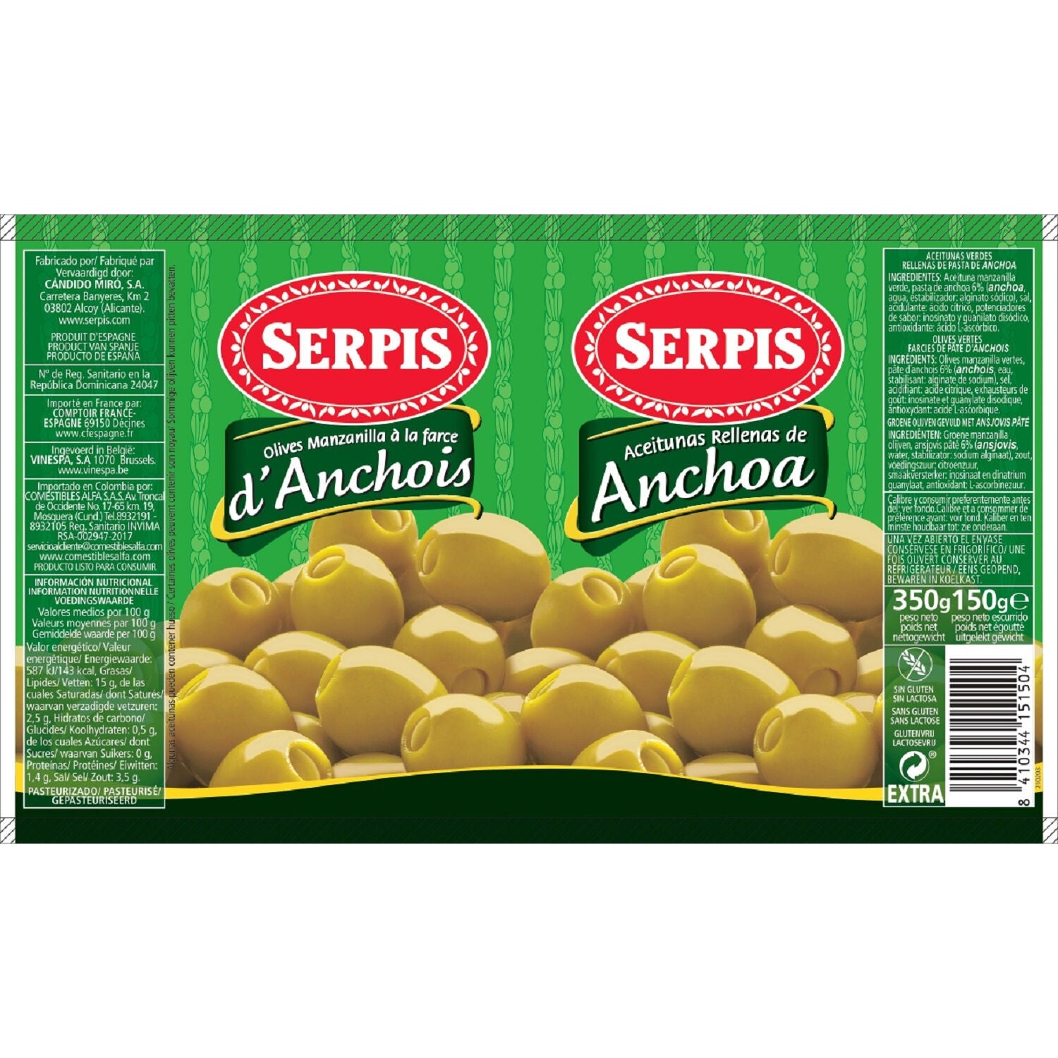 Manzanilla Green Olives SERPIS Anchovy Stuffing