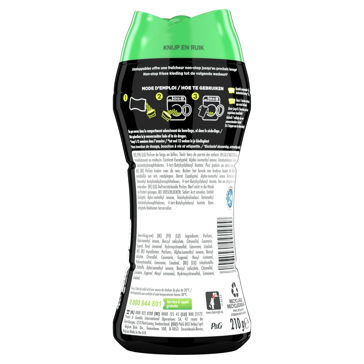 A breath of fresh air wash after wash, The pearl laundry fragrance is bursting with clean, powerful notes of green plants and powerful fresh aldehyde notes, Intensify its fragrance by increasing the quantity of pearls you use, Pour the pearls directly into the empty drum of your machine before starting your wash, Lenor Unstoppables pearl laundry fragrances are available in different scents, 100% recycled plastic bottle, excluding the cap, dosing device and sleeve. Fully recyclable, except the sleeve
