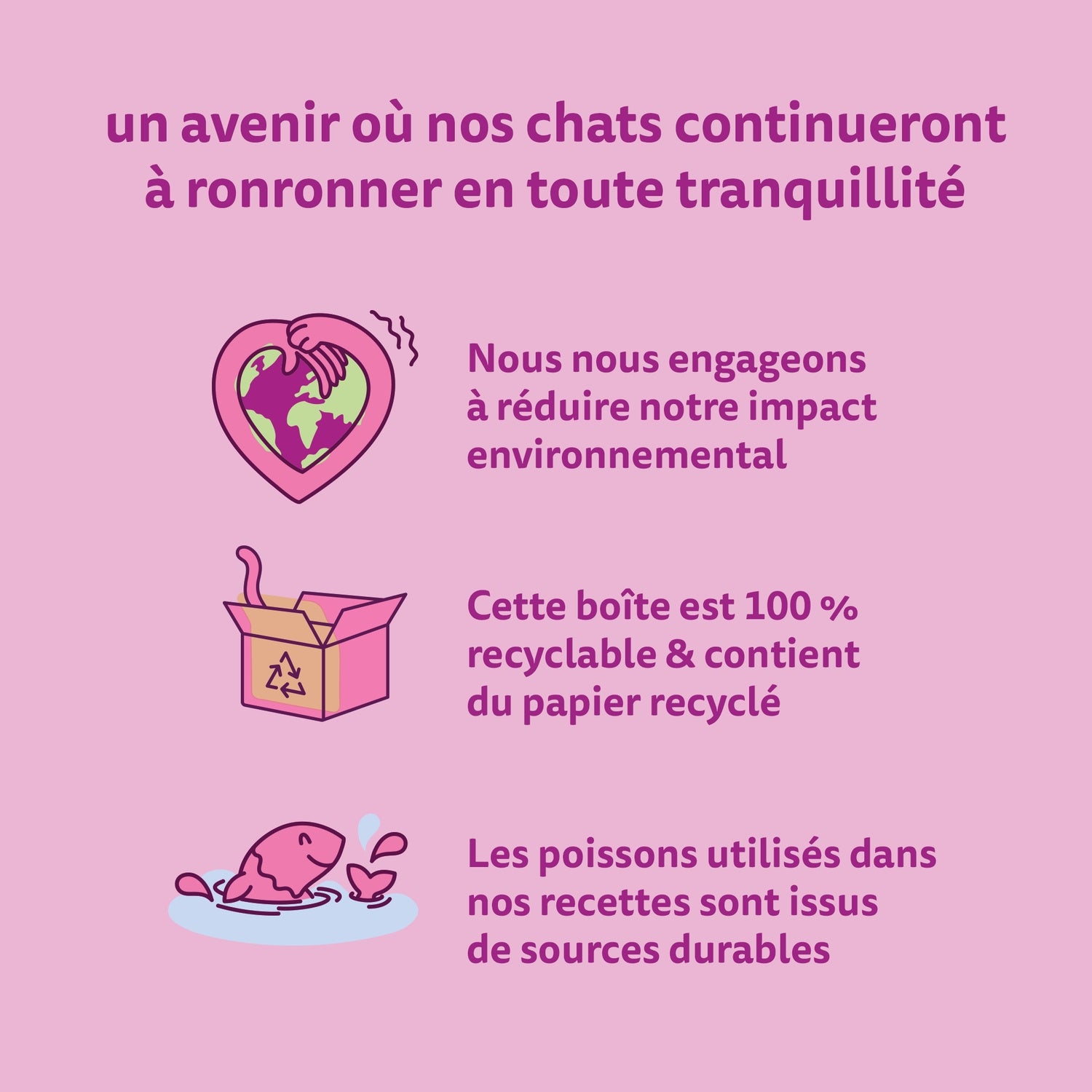 Complete wet food for adult cats from 1 year old - Also suitable for neutered cats - Whiskas® Tasty Mix Chef's Selection freshness pouches in sauce 4 varieties (with Beef, Poultry and Vegetables / Salmon and Carrots / Chicken and Turkey / Chicken and Cod). Delicious recipes offering a tempting mix of ingredients to delight your cat's taste buds at every meal, without compromising on nutrition. Tasted and approved by cats, each tasty dish in sauce whets their appetite and provides a feeling of well-being that will have your cat purring with pleasure! Prepared with high-quality ingredients, a delicate texture and an irresistible taste for guaranteed pleasure! The fish used in our recipes comes from sustainable sources. Give your cat the flavors they prefer and all the good things they need for variety while helping them stay full of vitality and happy. A complete and balanced meal…