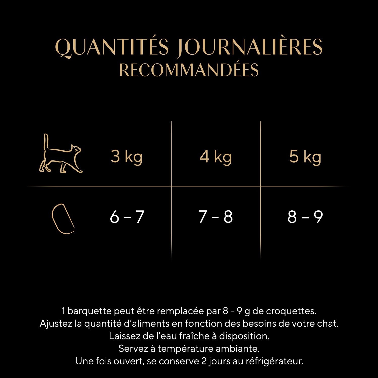 Complete wet food for adult cats - With Chicken. With their delicate texture, this selection of luxury cat terrines, carefully crafted with your cat's favorite flavors, will have your cat purring with delight. Each Sheba® Perfect Portions™ luxury cat terrine is prepared with quality ingredients in an easy-to-use format. The trays, lids, and cardboard box are recyclable. The Sheba® Perfect Portions™ range offers exquisite recipes that are always freshly served in a perfect size to portion your cat's meals. Offer a delicious experience with these exceptional recipes every day and share even more bonding with your feline. Cat food developed with our nutritionists and veterinarians at the WALTHAM® Research Center - the world's leading reference for pet nutrition and well-being.