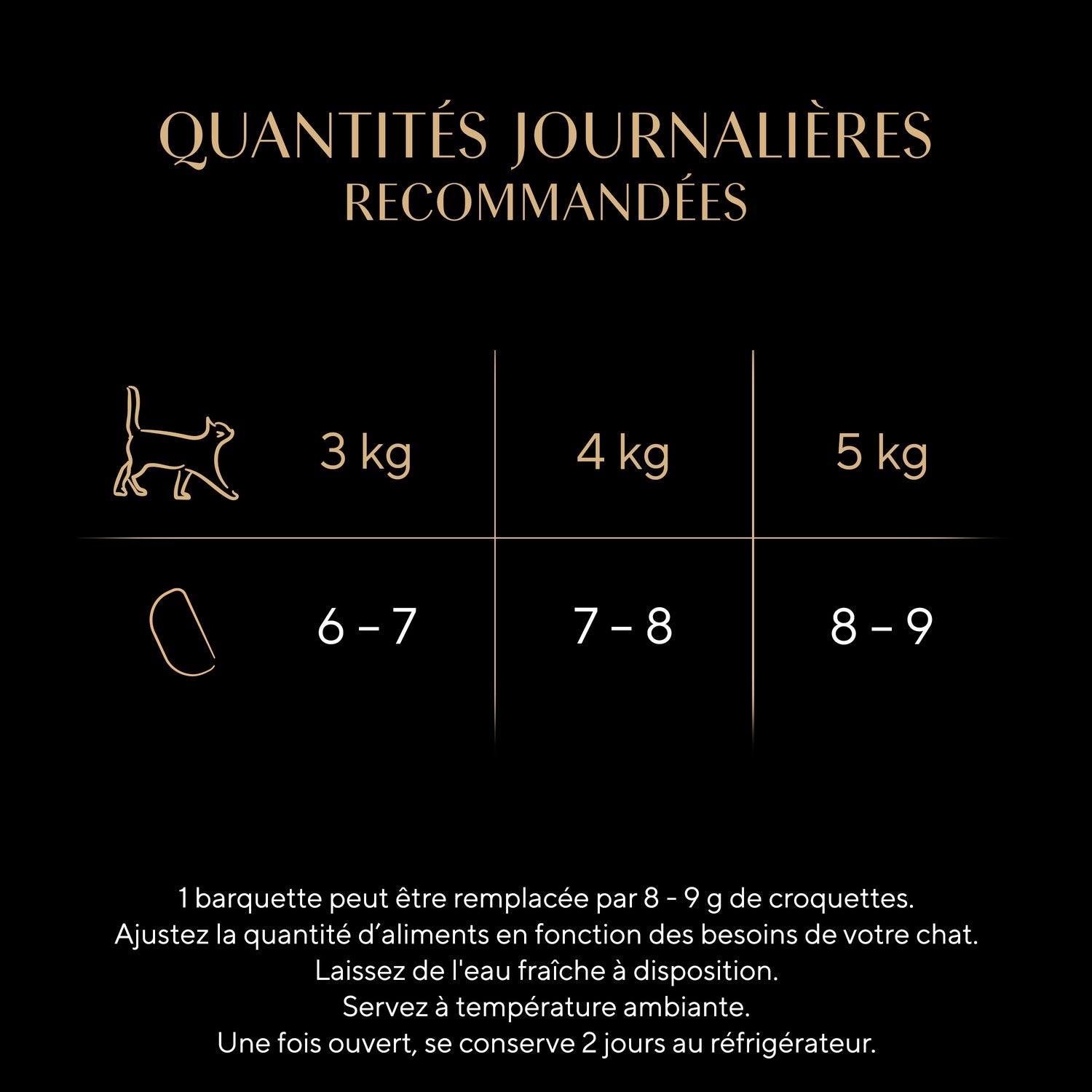 Complete wet food for adult cats - With sustainably sourced salmon. With their delicate texture, this selection of cat terrines, carefully crafted with your cat's favorite flavors, will have your cat purring with delight. Easy to use, the Sheba® Perfect Portions™ range offers exquisite recipes that are always freshly served in the perfect size to portion your cat's meals. Offer a delicious experience with these exceptional recipes every day and share even more bonding with your feline. Each Sheba® Perfect Portions™ luxury cat terrine is prepared with quality ingredients. That's why we are committed to using fish from responsible sources. Offering responsible and sustainable sourcing for all our fish products is one of our greatest commitments. Our fish is sourced from sustainable sources according to the MSC standard. www.msc.org/fr MSC-C-52780. Providing our pets with responsible and healthy food products, both through the sourcing of our raw materials and our manufacturing processes, is one of our greatest challenges. The MSC ecolabel ensures that we meet the criteria established by the sustainable fishing experts of the Marine Stewardship Council. The trays, lids, and cardboard box are recyclable. Cat food developed with our nutritionists and veterinarians at the WALTHAM® research center - the world's leading reference for pet nutrition and well-being.