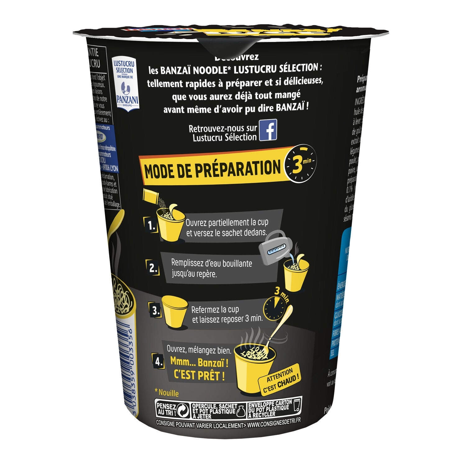 Enjoy this BANZAÏ NOODLE chicken recipe wherever you want thanks to its ultra-practical cup. - Discover the BANZAÏ NOODLE LUSTUCRU SELECTION: so quick to prepare and so delicious, you'll have already eaten everything before you can even say BANZAÏ!