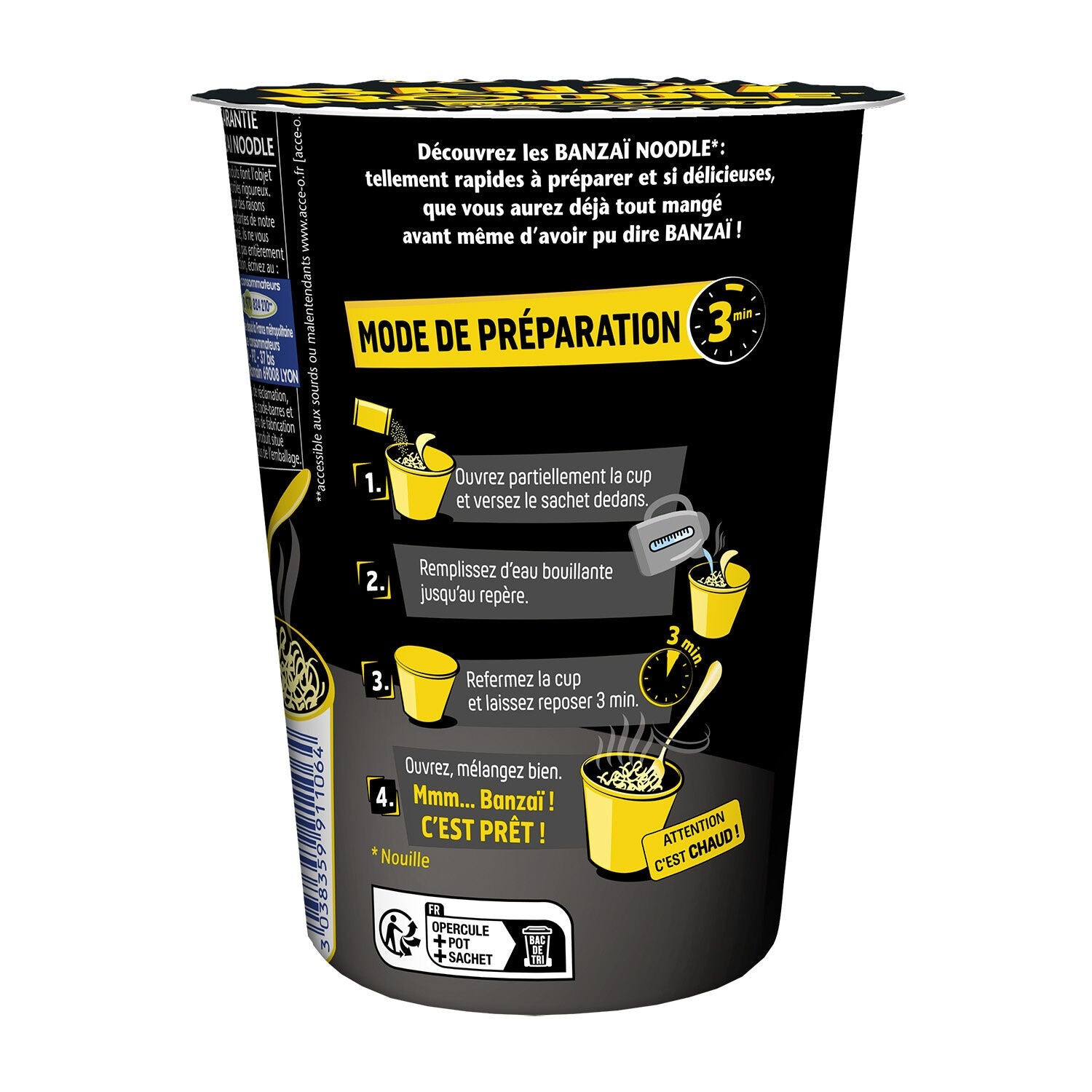 Vary your pleasures with this BANZAÏ NOODLE Chicken flavor recipe. Enjoy it wherever you want thanks to its ultra-practical cup.