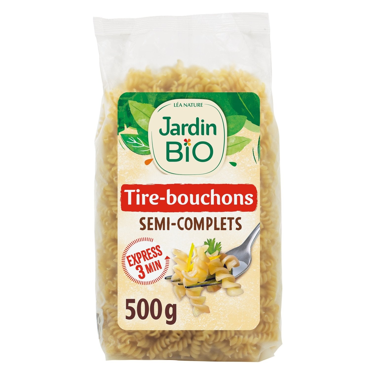 Organic Smart Selection - Organic products for everyday life Because your time is as precious as your food, Jardin Bio étic® corkscrews (fusilli) are prepared with semi-whole wheat semolina to provide fiber and protein. Slightly thinner than classic pasta, they will be ready to eat 'al-dente' in just 3 minutes! Semi-whole wheat semolina 1% for the planet Organic Source of fiber and protein Express cooking 3 min