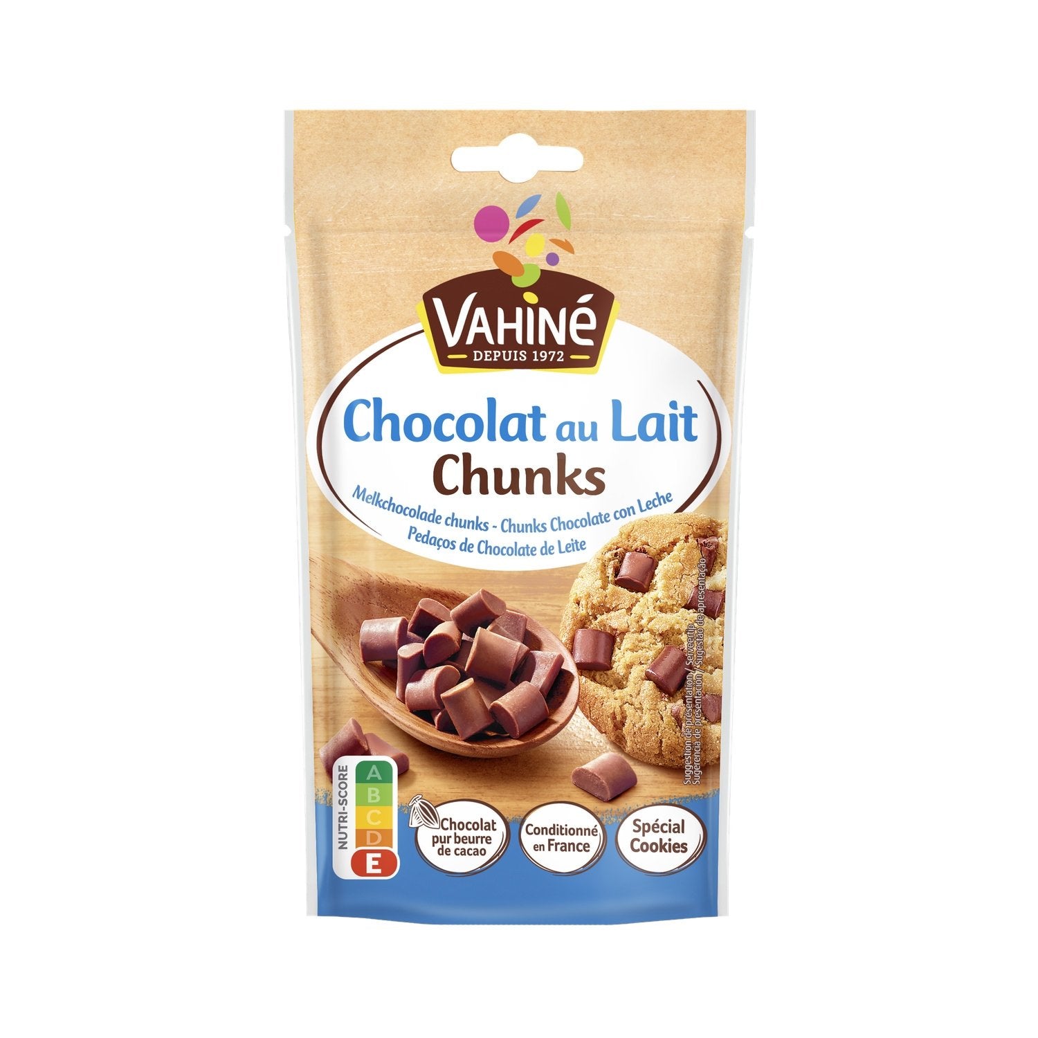 Milk chocolate chunks made with Pure Cocoa Butter chocolate, special cookies, packaged in France.