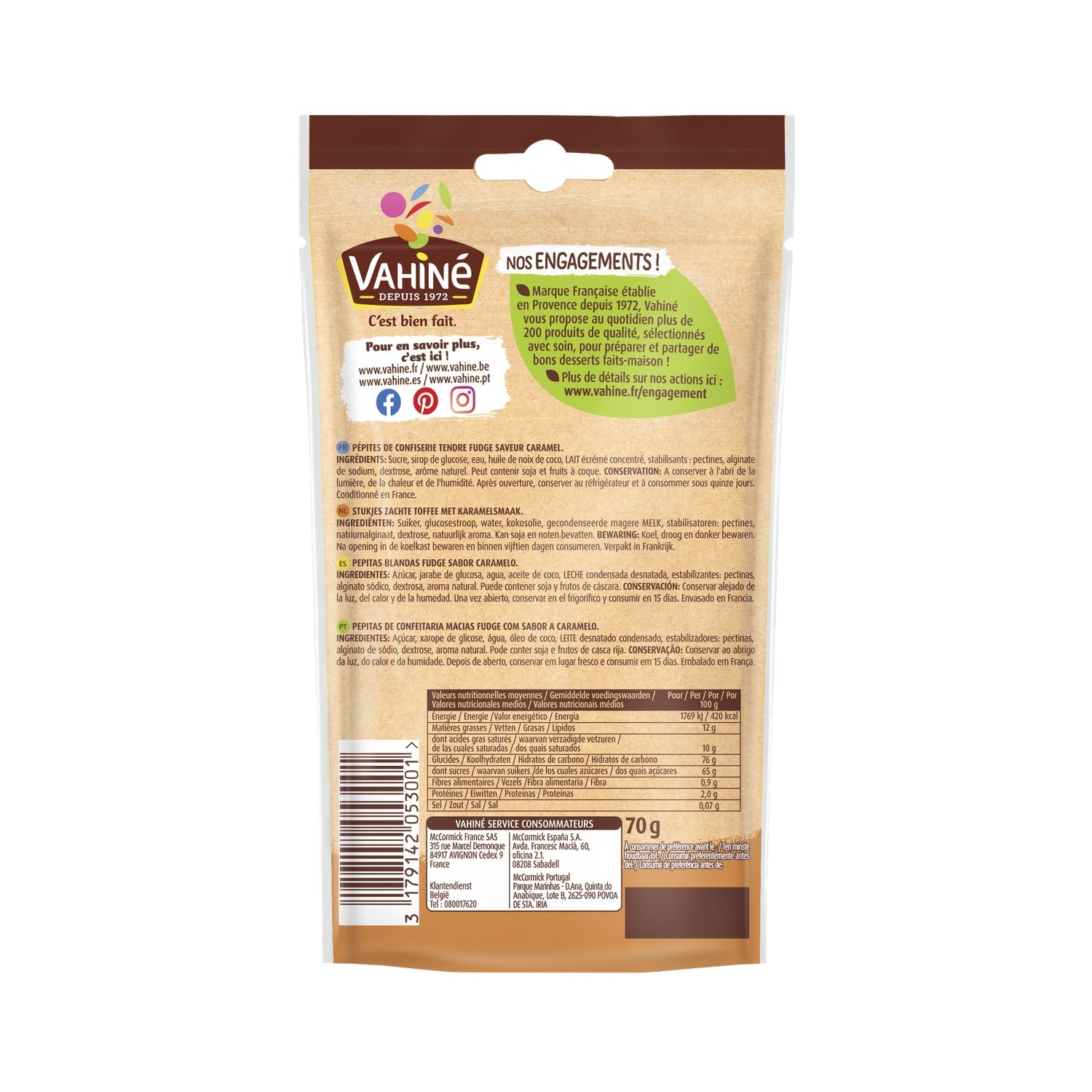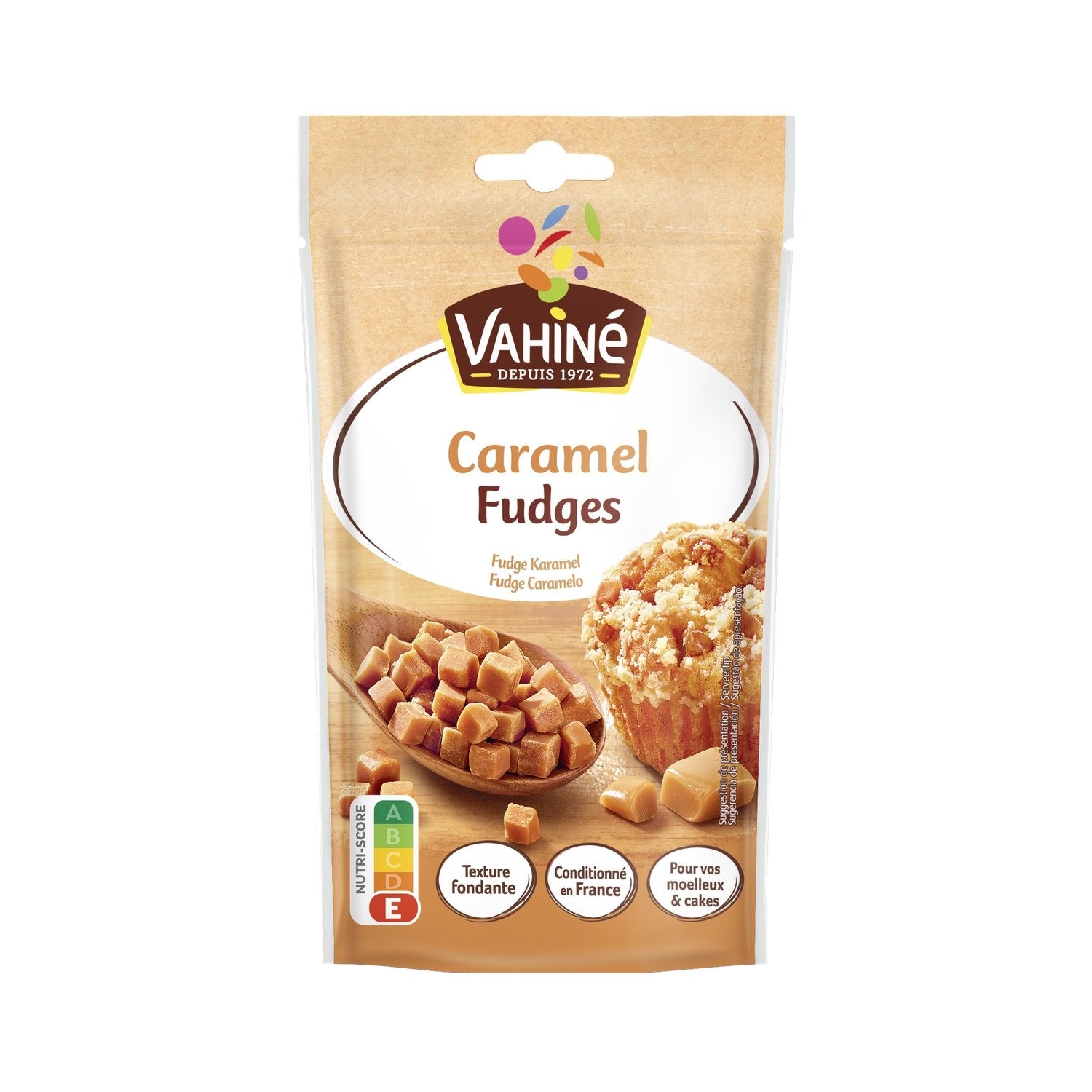 Caramel chips with a melting texture, for soft cakes and cakes, packaged in France.