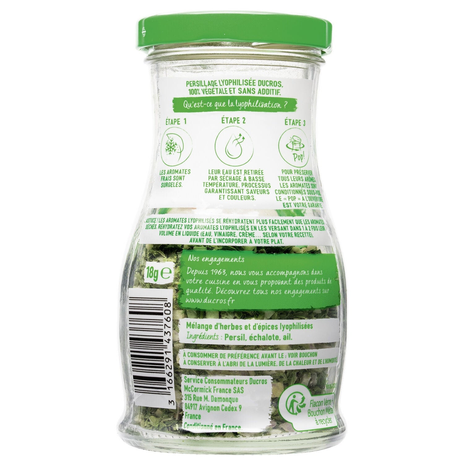 Ingredients: Mixture of freeze-dried herbs and spices (parsley (40%), shallot (30%), garlic (30%))