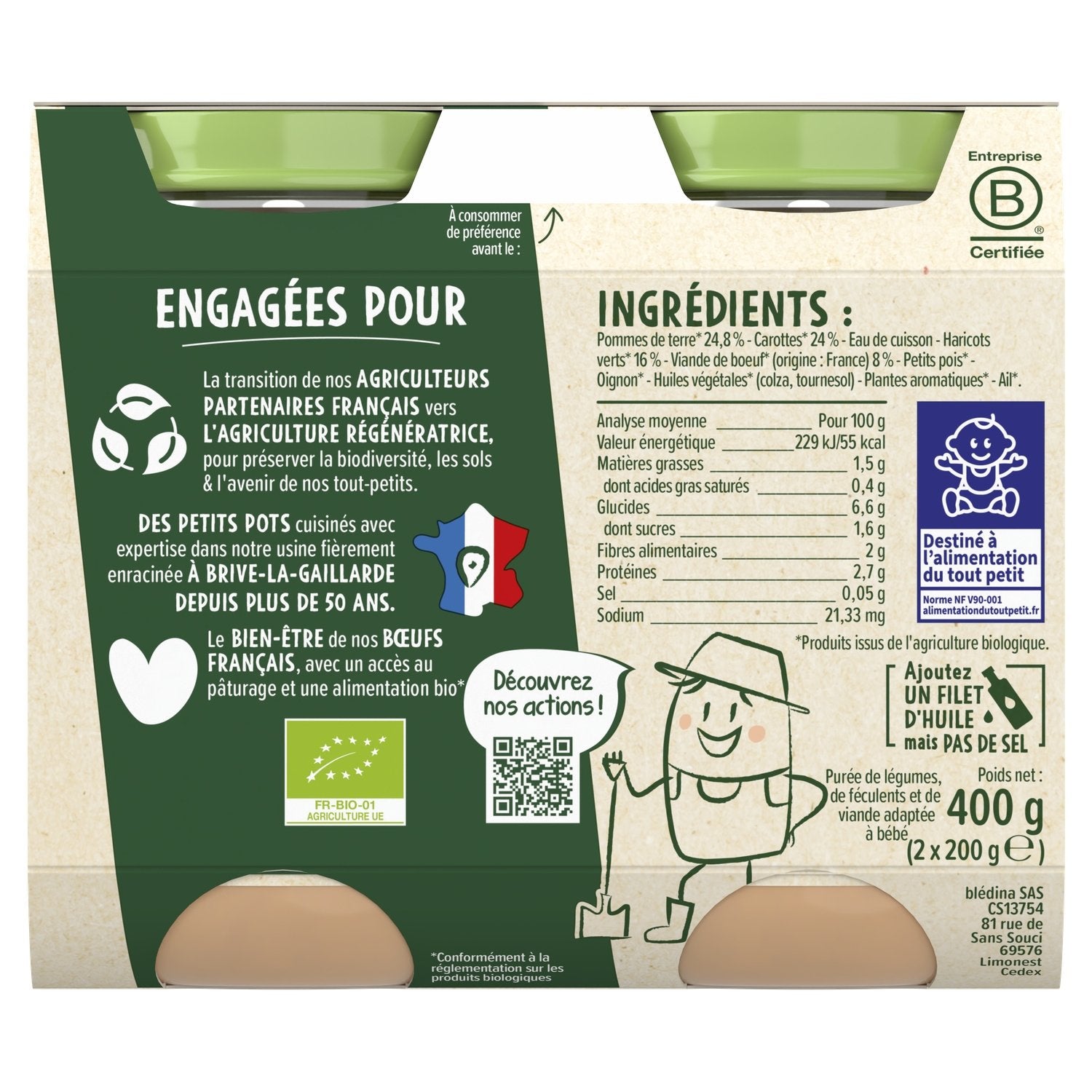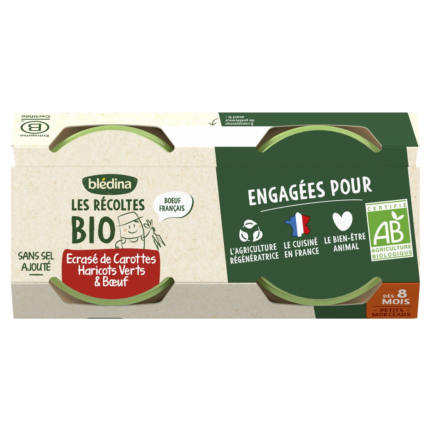 Baby Food Jar From 8 Months Crushed Carrots Green Beans Beef Les Récoltes Bio BLEDINA