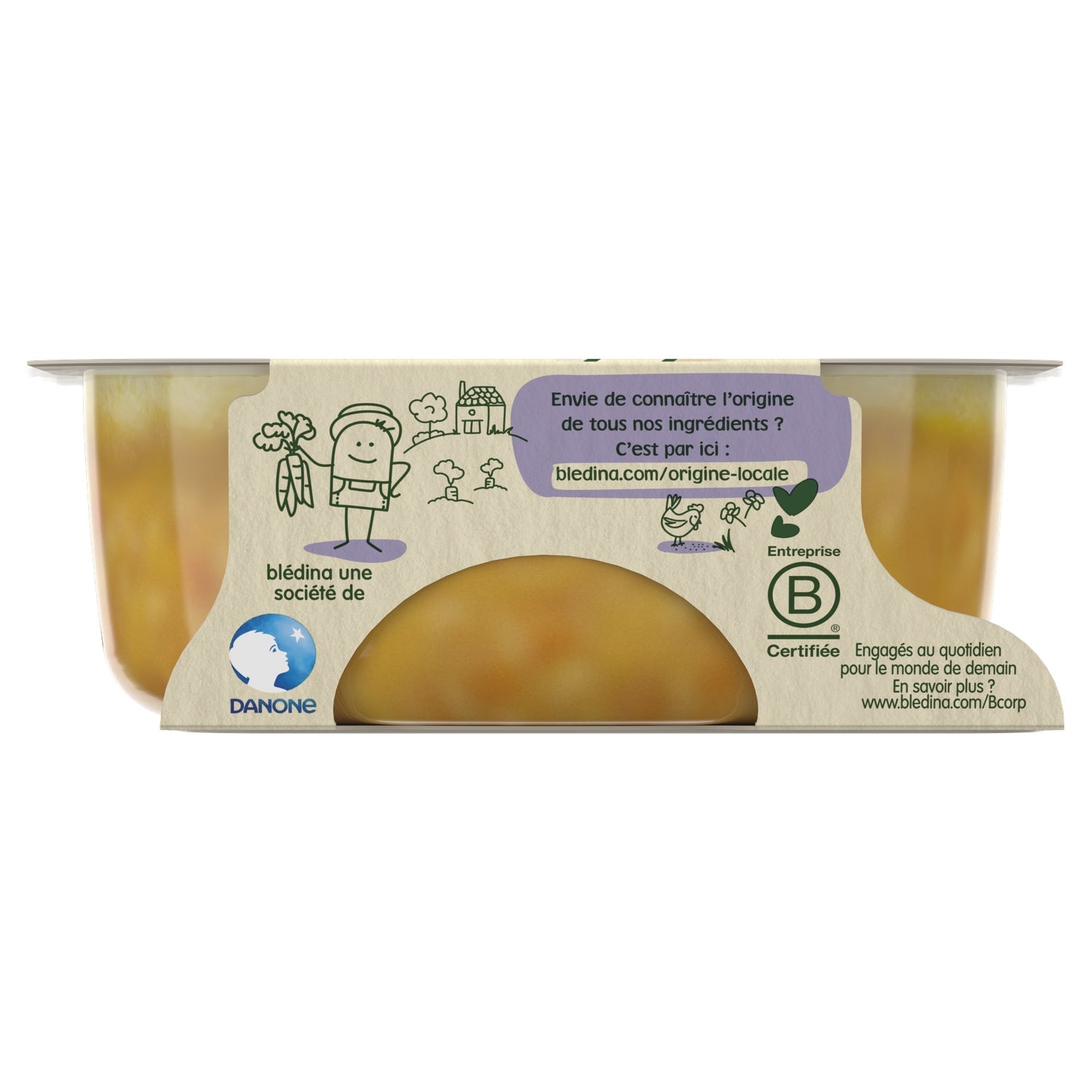 Experts in food diversification for over 100 years, Blédina is here to help you with all your baby's meals. Our mission? To awaken their curiosity for real food, thanks to over 250 recipes designed by nutritionists and perfectly adapted to their needs. Les RECOLTES BIO by BLEDINA has designed delicious organic dishes to continue to delight babies from 12 months with organic vegetables, starches, and meats. Discover the new meat-free recipe LES RECOLTES BIO Butternut Squash, Carrots, and Bulgur 1x230g From 12 months, with small pieces and no added salt!