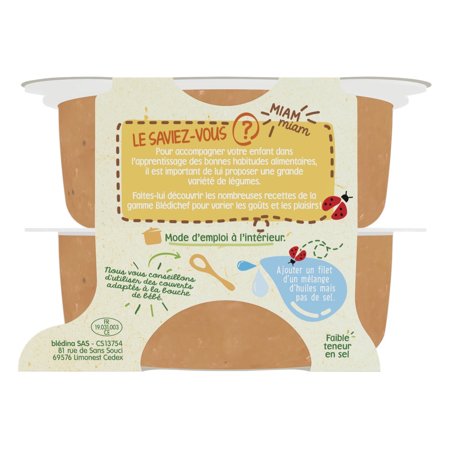 100% NATURAL ORIGIN ingredients, rigorously selected. This BLEDINA BLEDICHEF baby meal with pieces is PRESERVATIVE-FREE and suitable for baby's needs in accordance with infant feeding regulations.