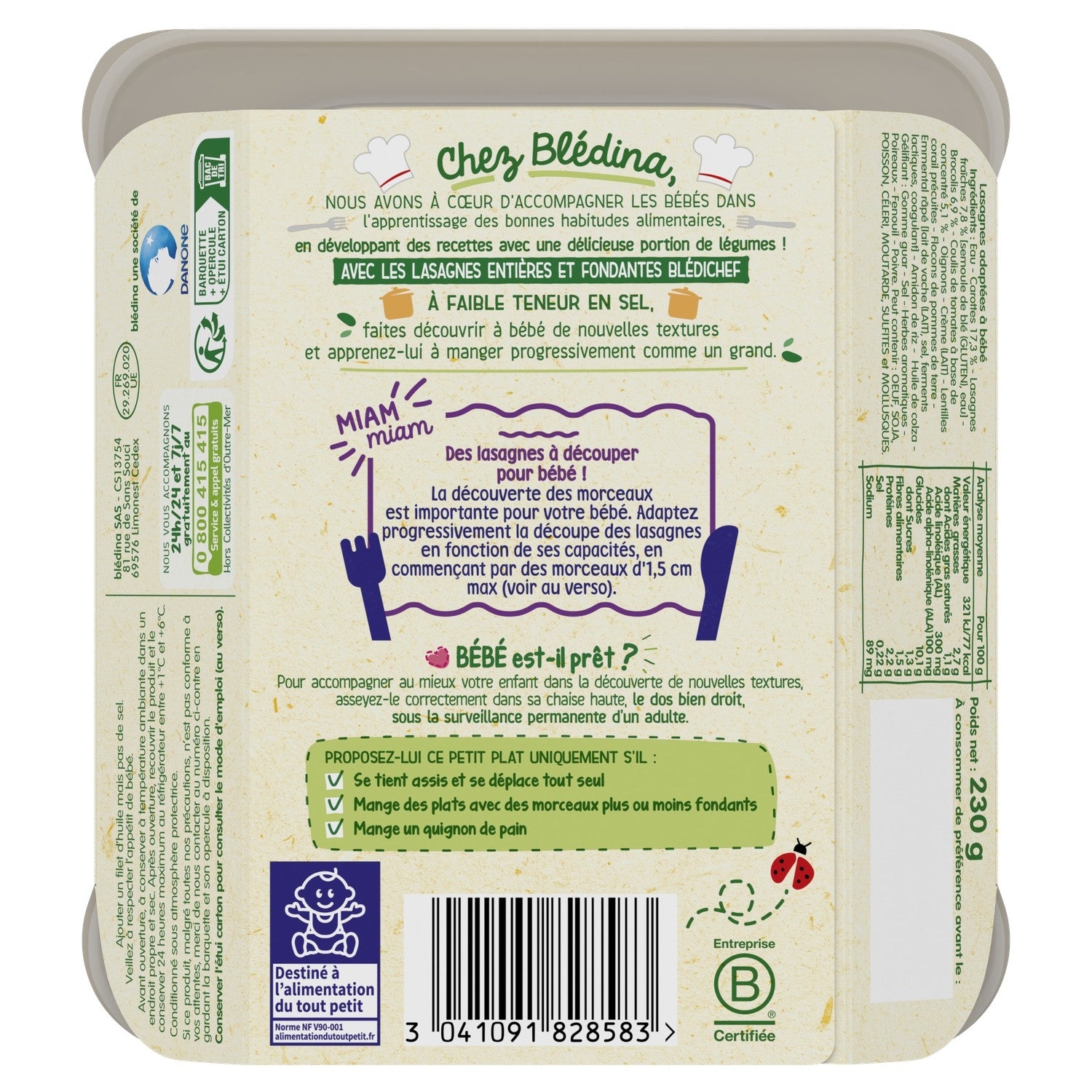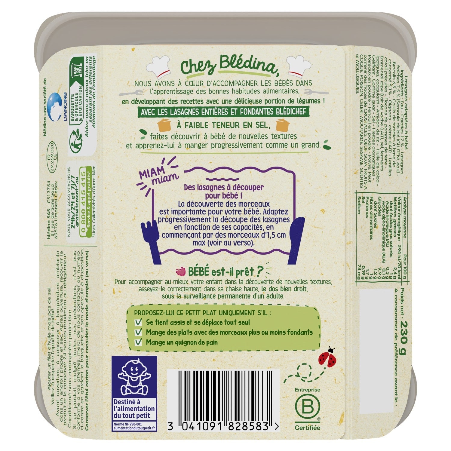 Whole, melting lasagna to be cut according to baby's abilities!, Low salt content