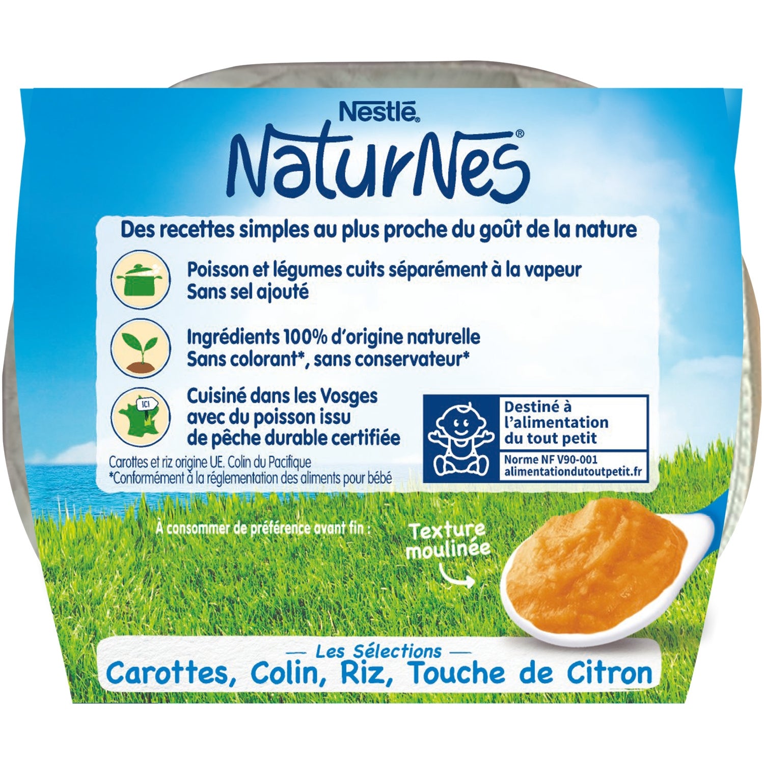 NATURNES helps take care of nature to offer the best to baby. In its "Les Sélections" range, NATURNES carefully chooses the origin of its meats and fish: 100% of the meats are of French origin and 100% of the fish are wild. So, for baby's dietary diversification, introduce them to our baby food jars with vegetables, pollock, and rice, made in France in the Vosges, with 100% natural ingredients!