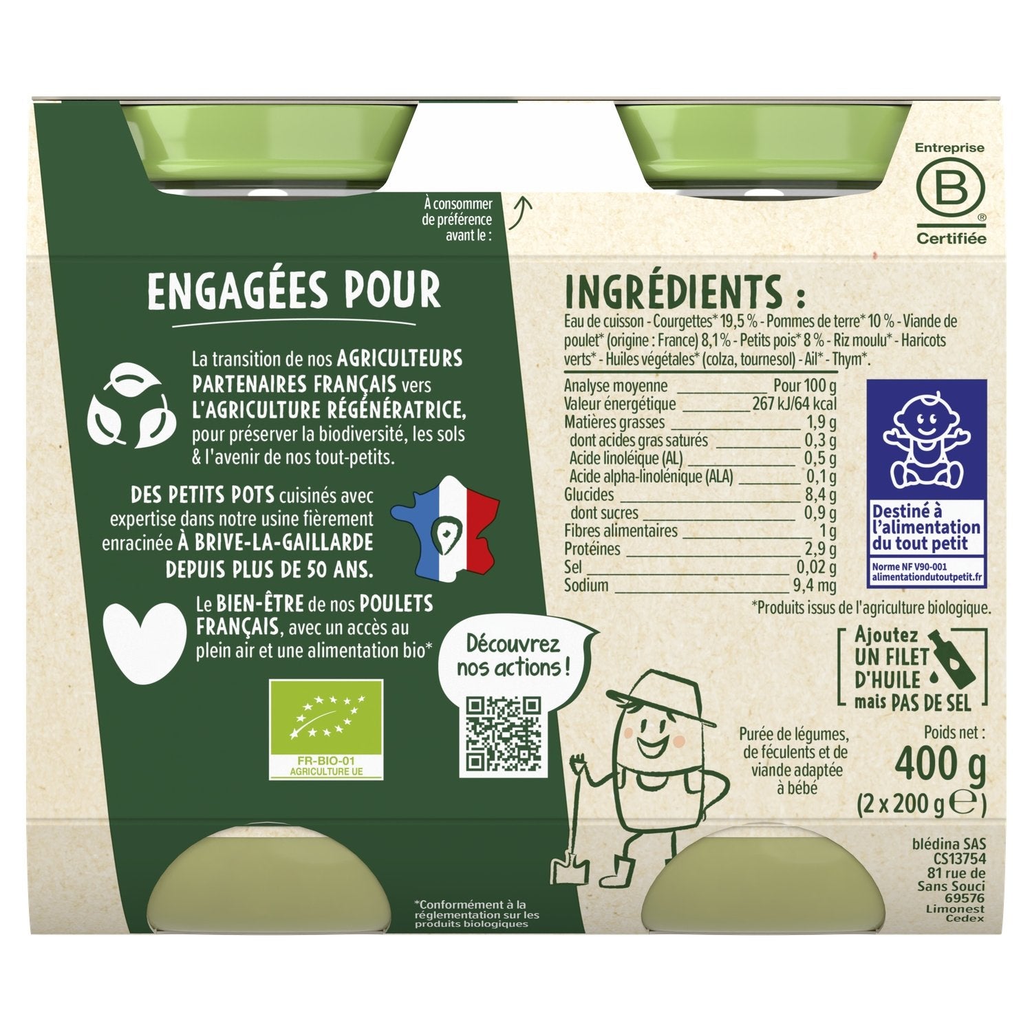 Baby Meal From 6 Months Zucchini Puree Farmhouse Chicken Thyme Les Récoltes Bio BLEDINA