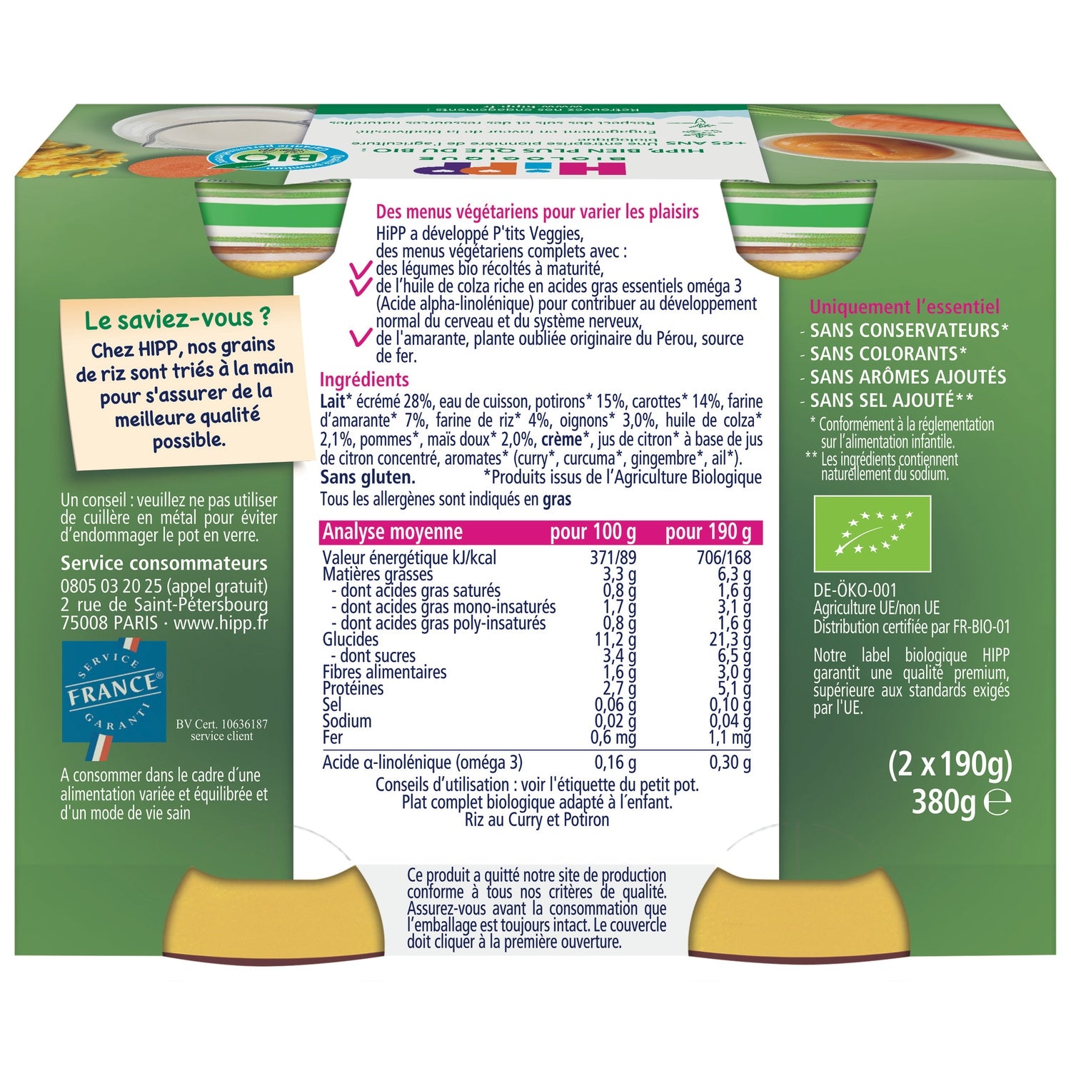 Baby Meal From 6 Months Organic Curry Rice and Pumpkin P'tits Veggies HIPP BIOLOGIQUE