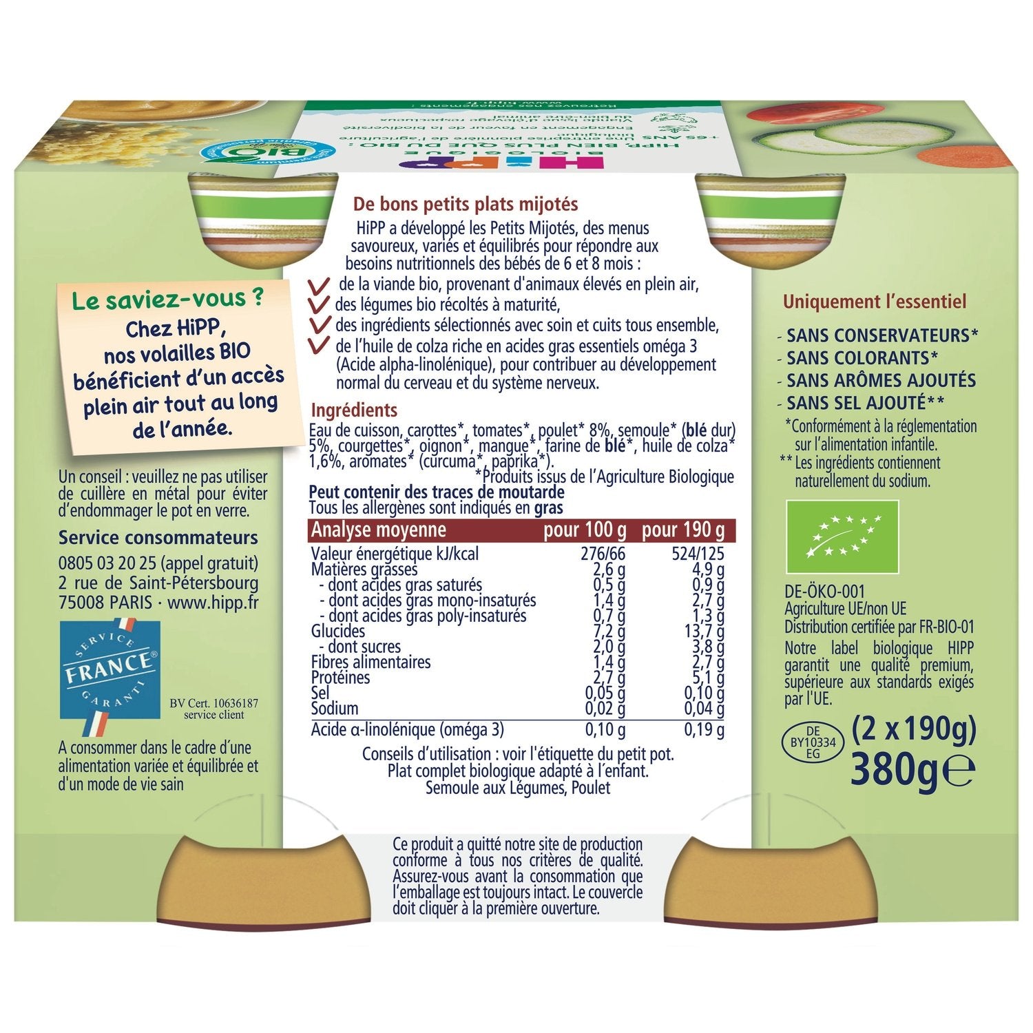 Baby Dish From 6 Months Semolina Vegetables Organic Chicken Small Stews HIPP ORGANIC