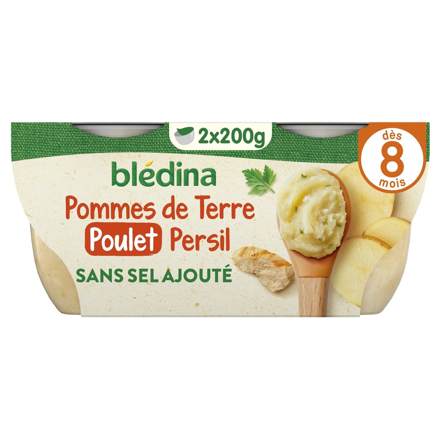Experts in food diversification for over 100 years, Blédina is here to help you with all your baby's meals. Our mission? To awaken their curiosity for real food, thanks to over 250 recipes designed by nutritionists and perfectly adapted to their needs*. Blédina Mashed Potatoes & Chicken with Parsley from 8 months Discover our range of small dishes to awaken baby's appetite and prepare them to chew well: each age has its own texture! *According to infant food regulations