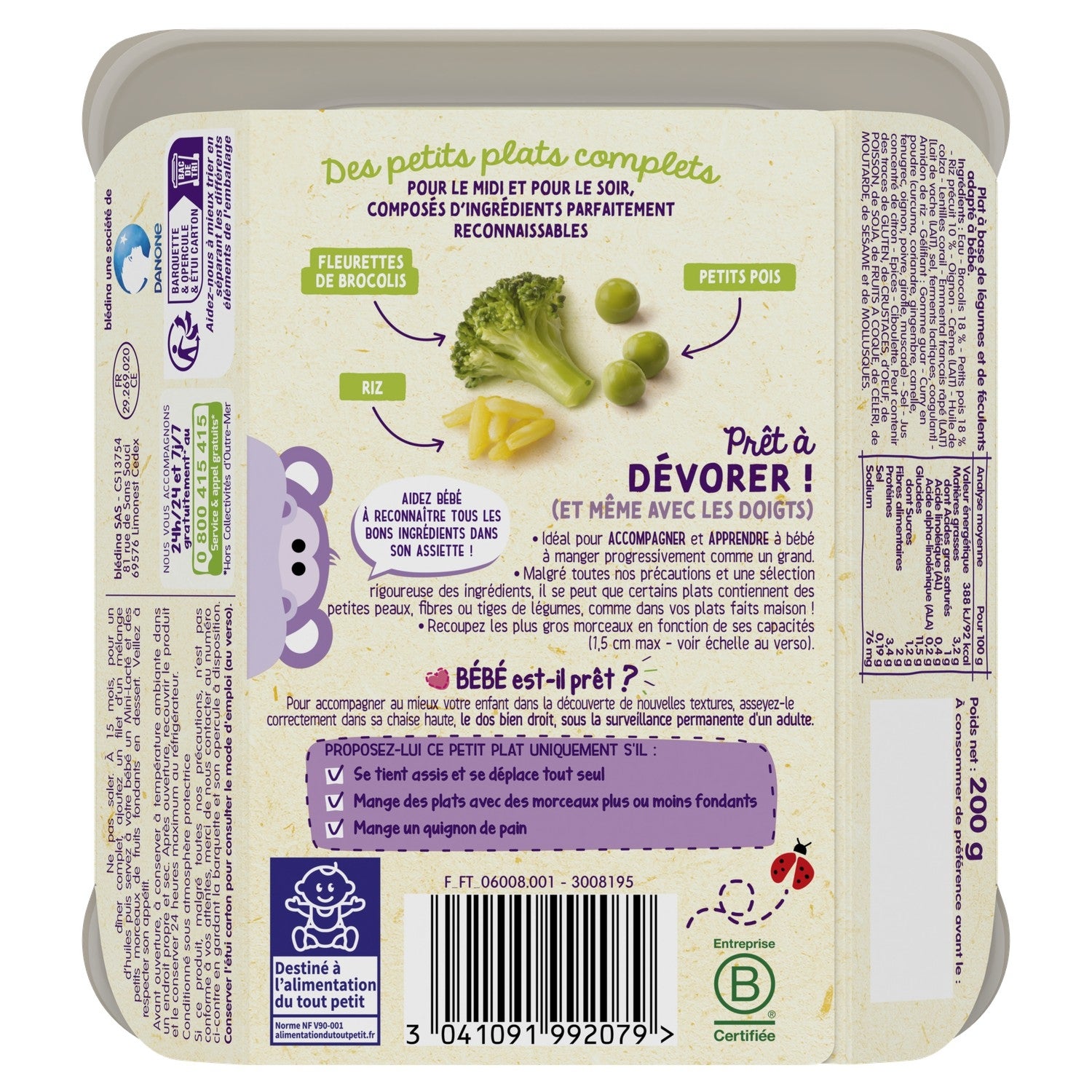 Baby Dinner Meal From 15 Months Broccoli Peas and Rice with Mild Curry Pieces to Devour BLEDINA
