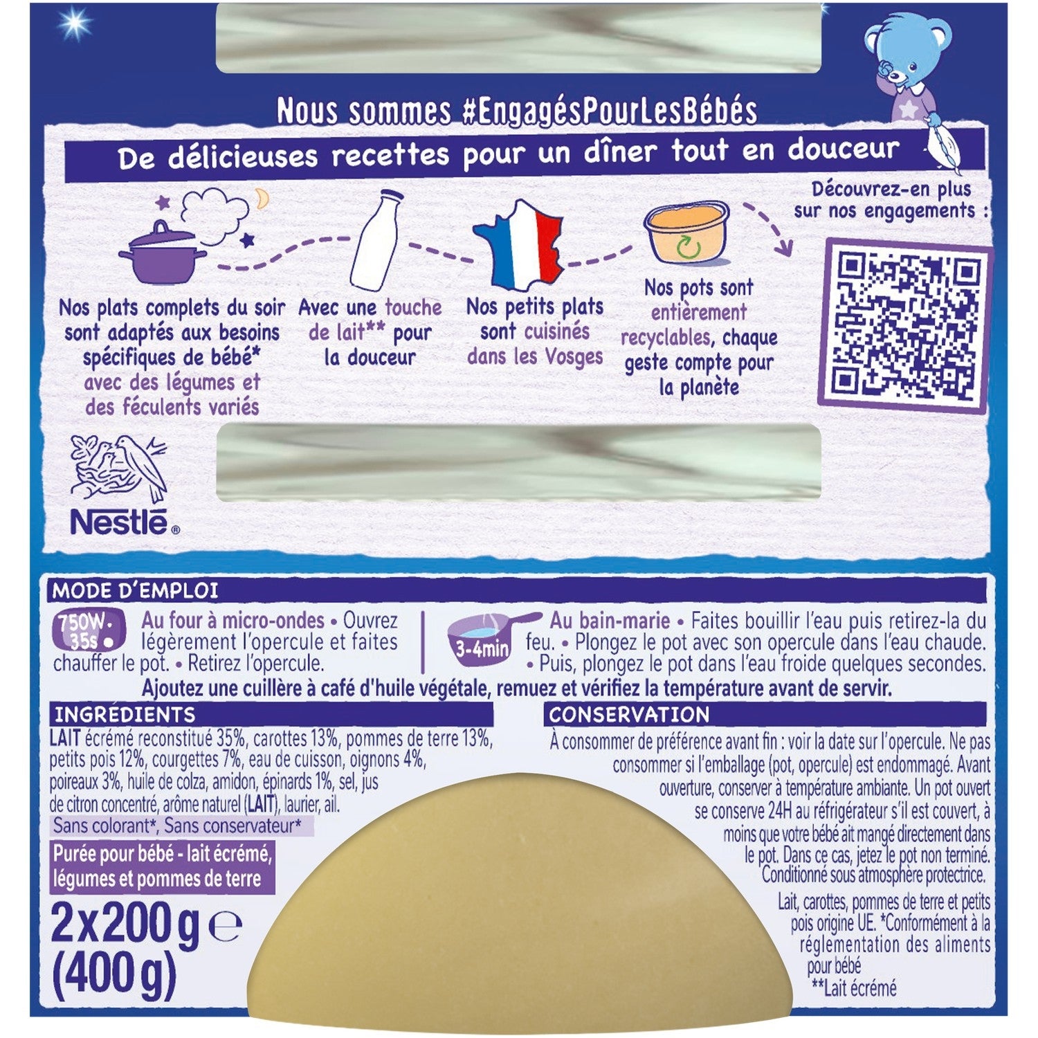Nighttime is an important time for baby, and before bedtime, there's dinner. Discover P'TIT SOUPER Evening Purée with 7 Vegetables: a little evening meal designed especially for babies from 8 months old*, with skimmed milk, starchy foods, and mild vegetables. A baby evening meal cooked in France with melt-in-the-mouth pieces to encourage baby to discover textures and flavors. Together, let's participate in the ecological transition: we've removed the lids from our jars to reduce plastic per jar by 40%**! Milk, carrots, potatoes, and peas from the EU