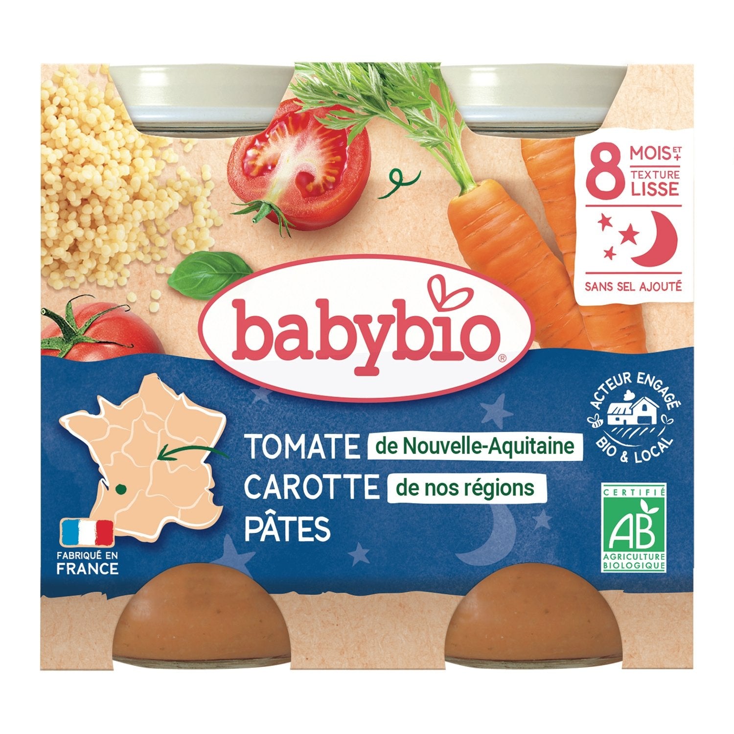Baby Evening Meal From 8 Months Carrot Tomato Pasta Menu of the Day BABYBIO