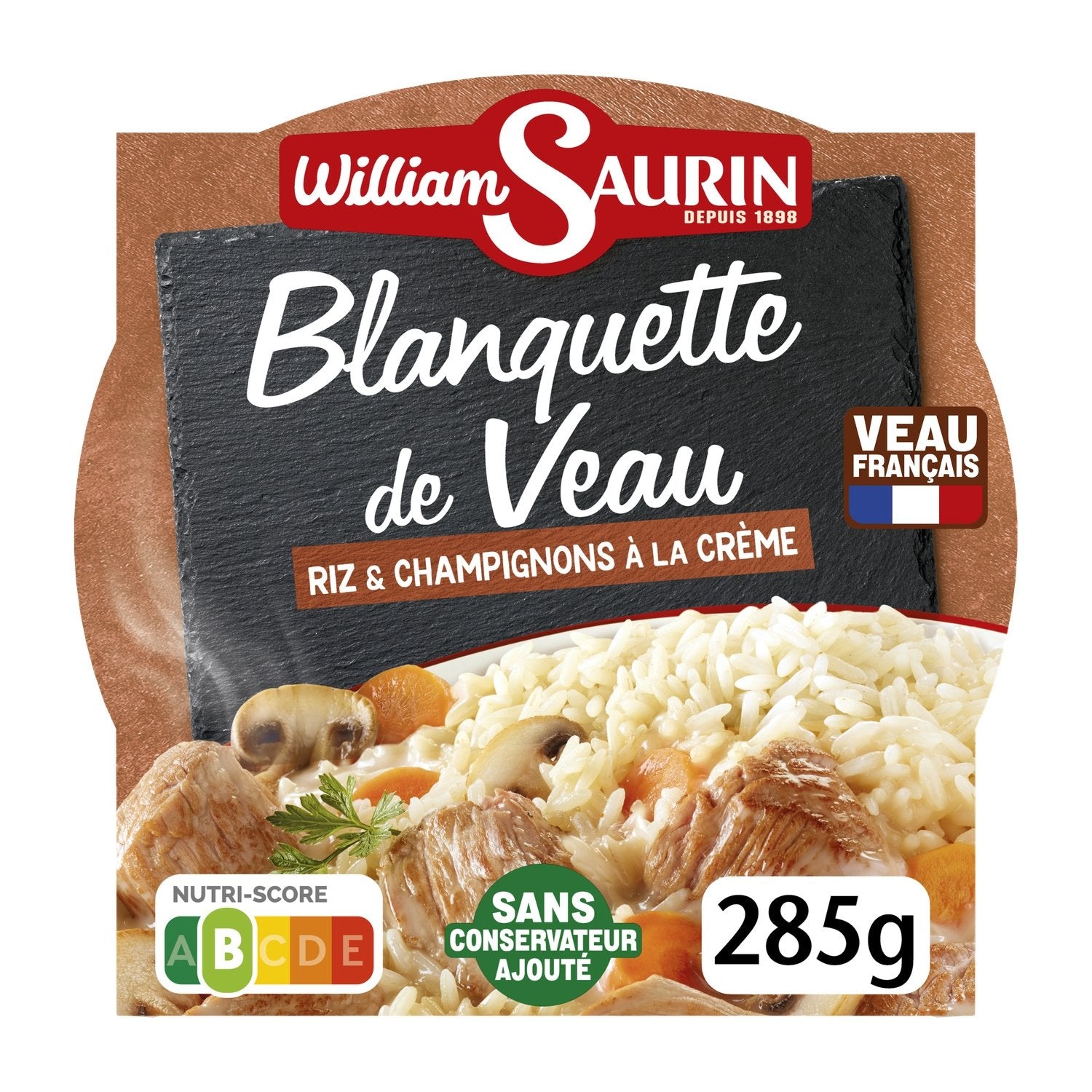 Tender pieces of veal cooked with cream, tangy with a hint of lemon and garnished with rice. EXPIRED END? Before throwing away: look - smell - taste / Too Good To Go Tgtg-label.com LET'S FIGHT FOOD WASTE TOGETHER WITH Too Good To Go This William Saurin dish has its MINIMUM DURABILITY DATE ("best before"). Beyond this date, don't panic! It presents no health risk. This only means that once the date has passed, the taste or appearance of the product may change slightly, but you can still eat it. + insert with the new Doypack range Good for Us William Saurin is committed - Guaranteed meat traceability - No artificial flavors - No added preservatives - Recyclable packaging: place in your recycling bin!